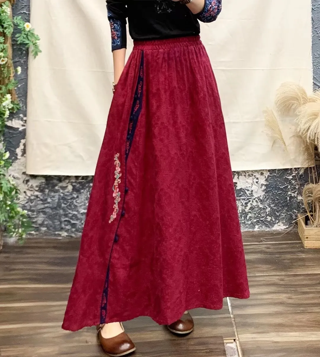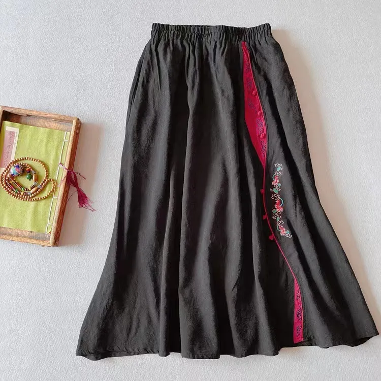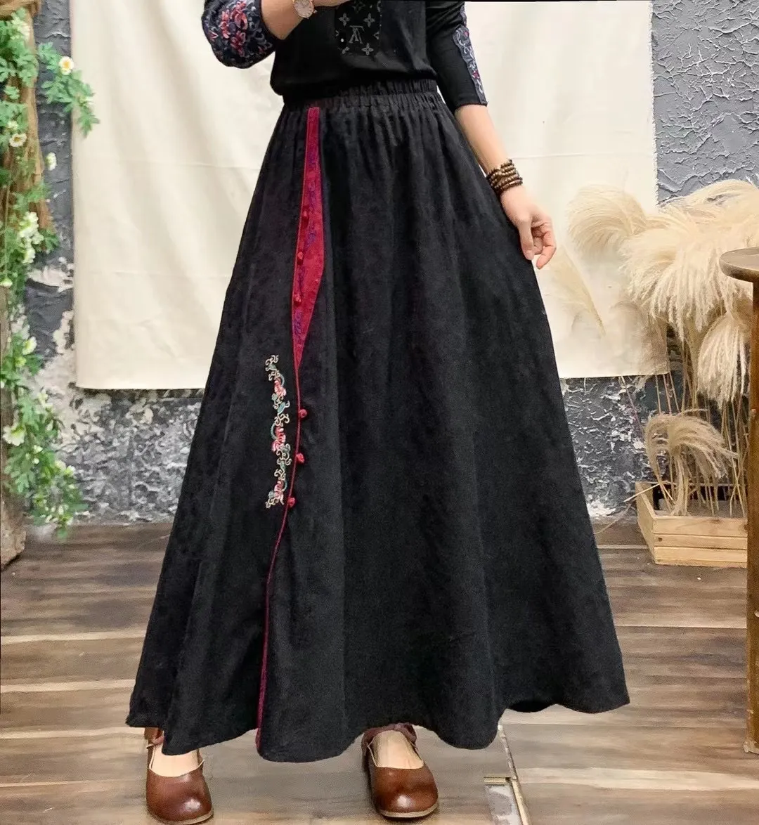 衣都精品- 新款民族風刺繡鬆緊腰半身裙
