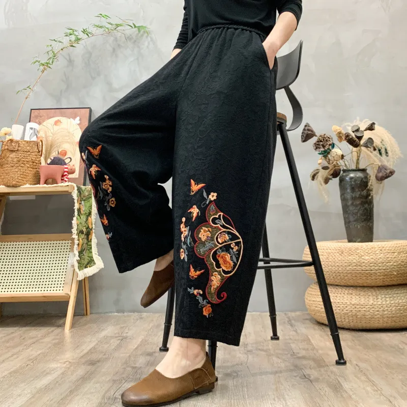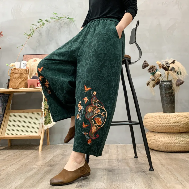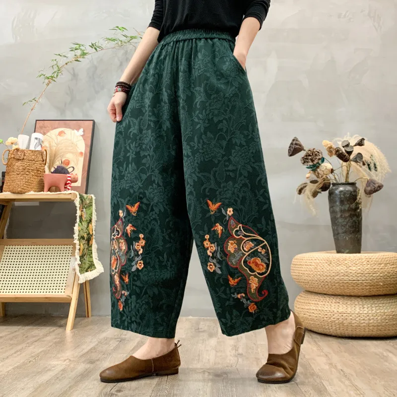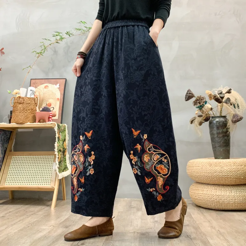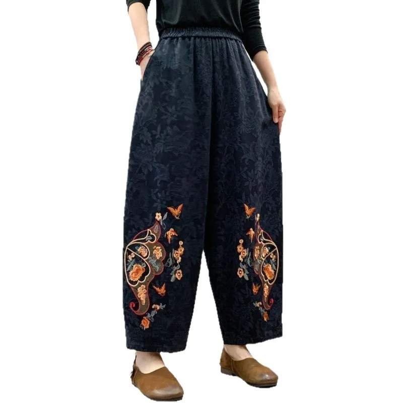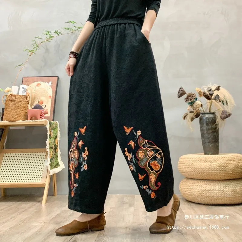 衣都精品- 新款民族風提花刺繡鬆緊腰顯瘦哈倫褲