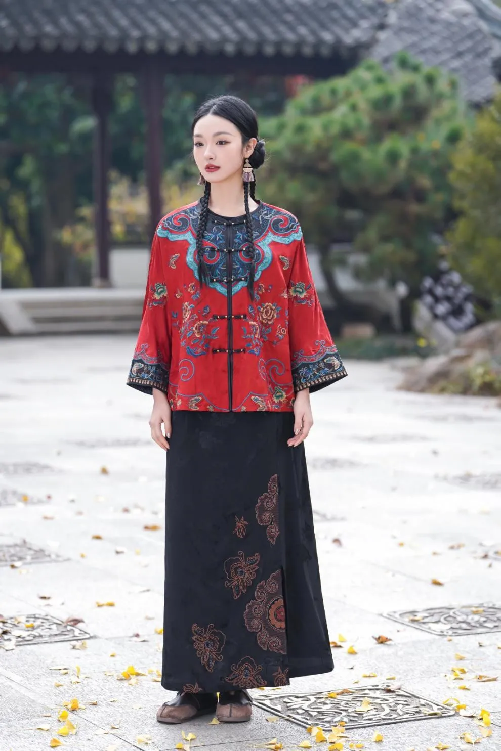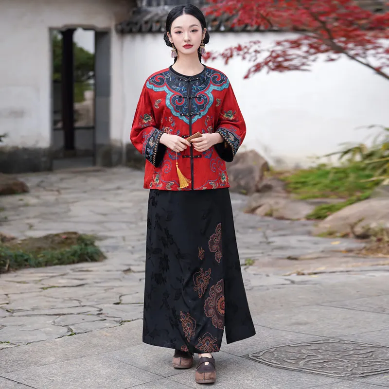 衣都精品- 新款民族風重工刺繡對襟盤扣提花外套