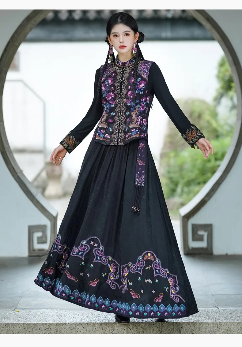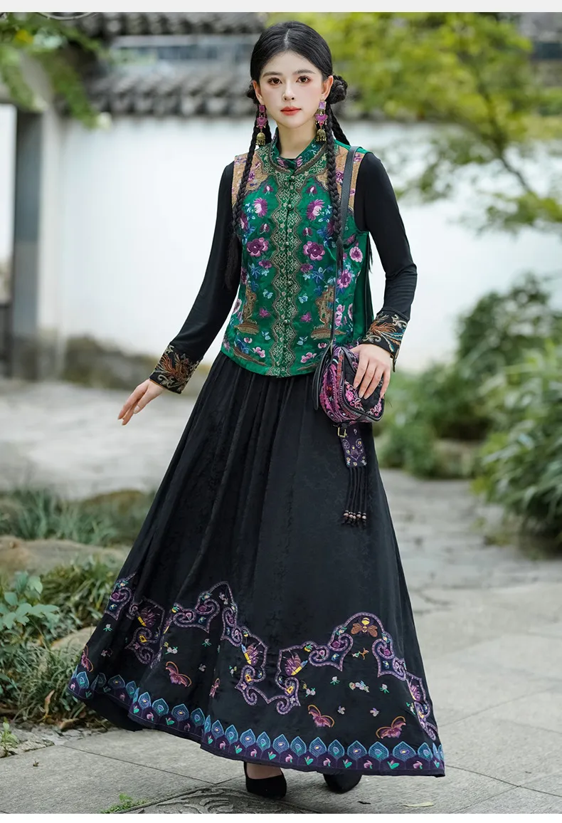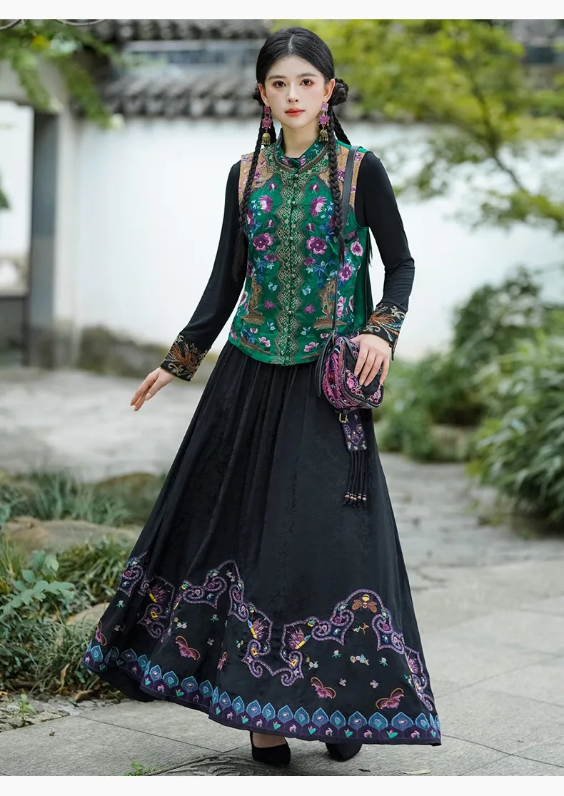 衣都精品- 新款民族風提花刺繡棉麻半身裙