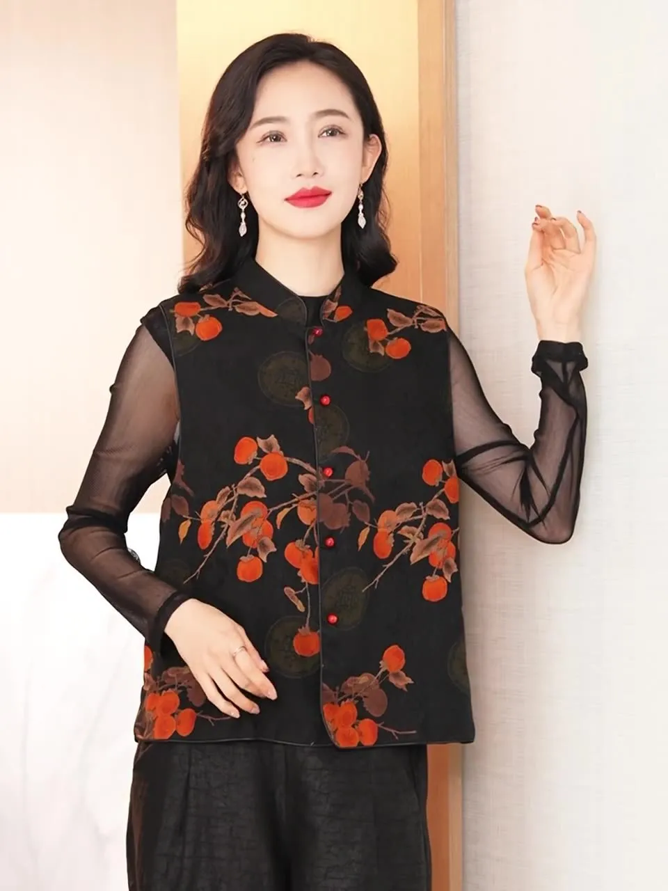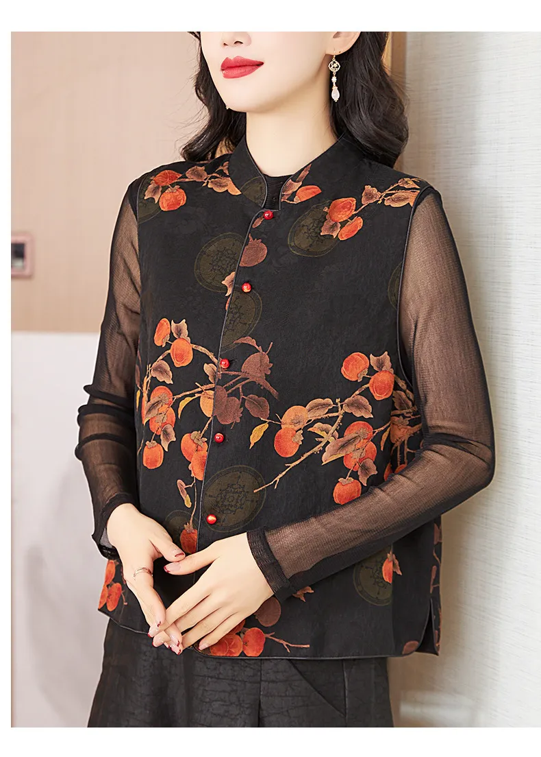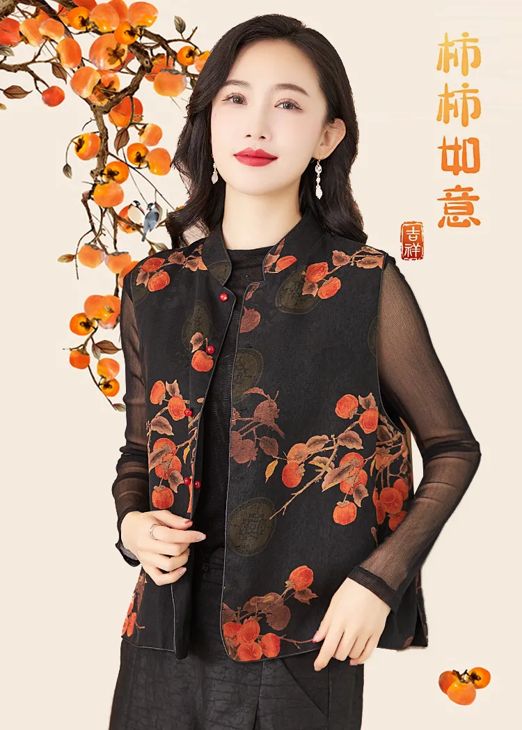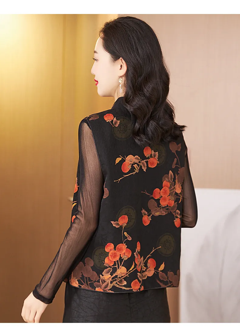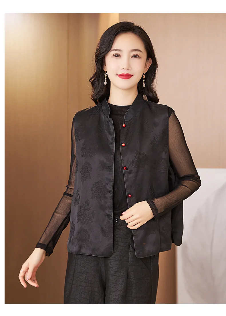 衣都精品- 新款復古立領提花無袖兩面穿馬甲外套