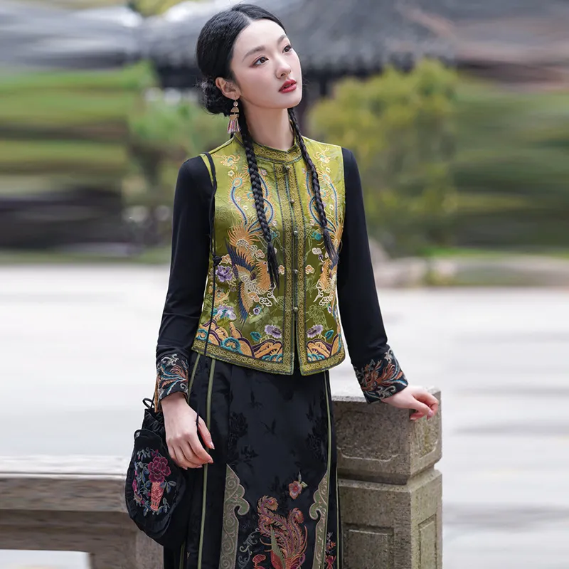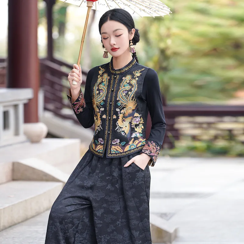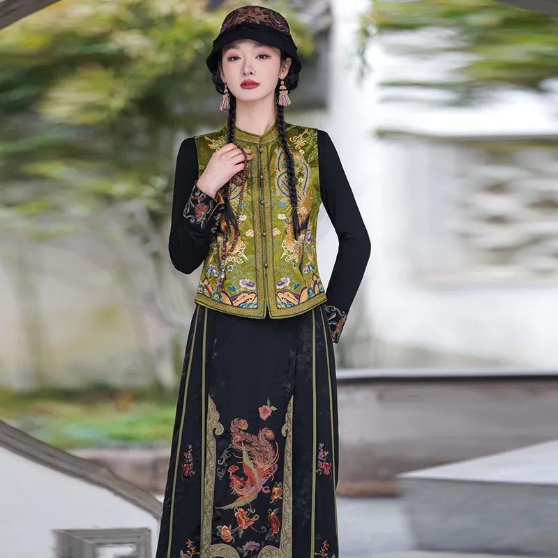 衣都精品- 新款民族風坎肩立領刺繡短款馬甲外套
