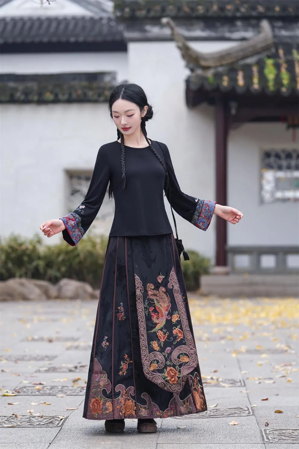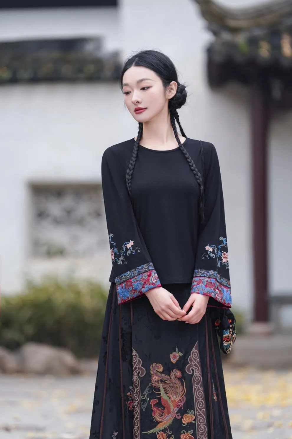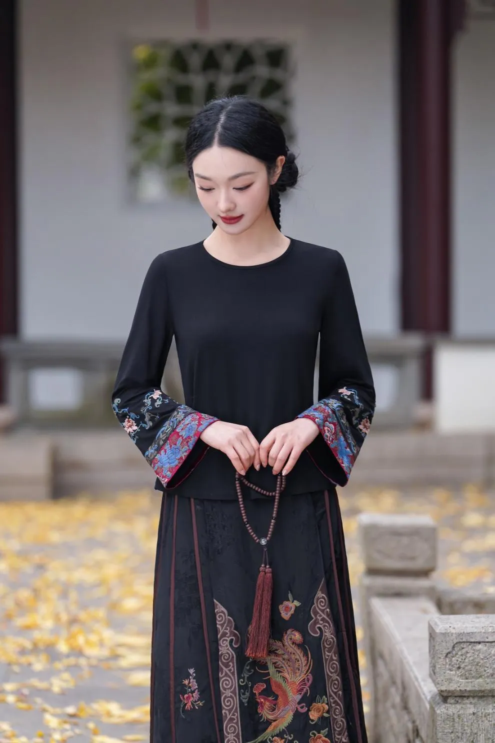 衣都精品- 新款民族風撞色刺繡圓領長袖上衣