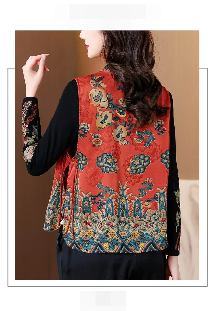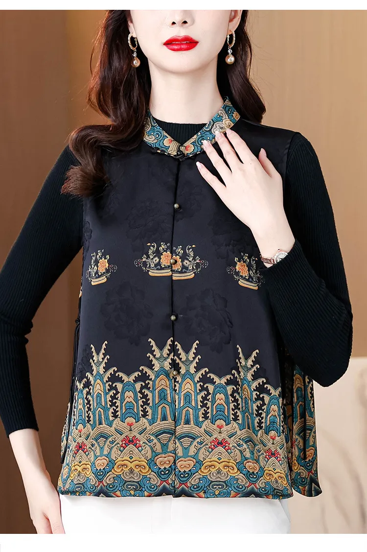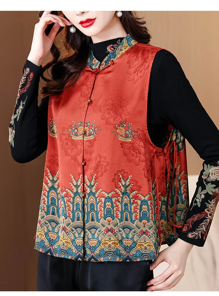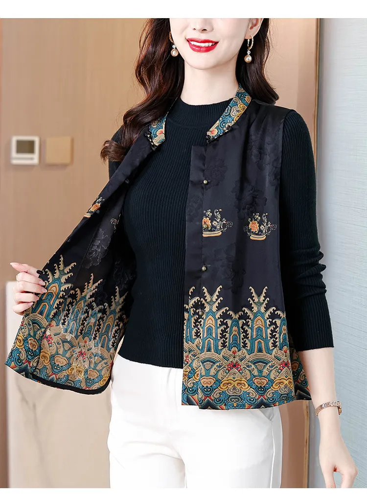 衣都精品- 新款民族風提花盤扣無袖馬甲外套