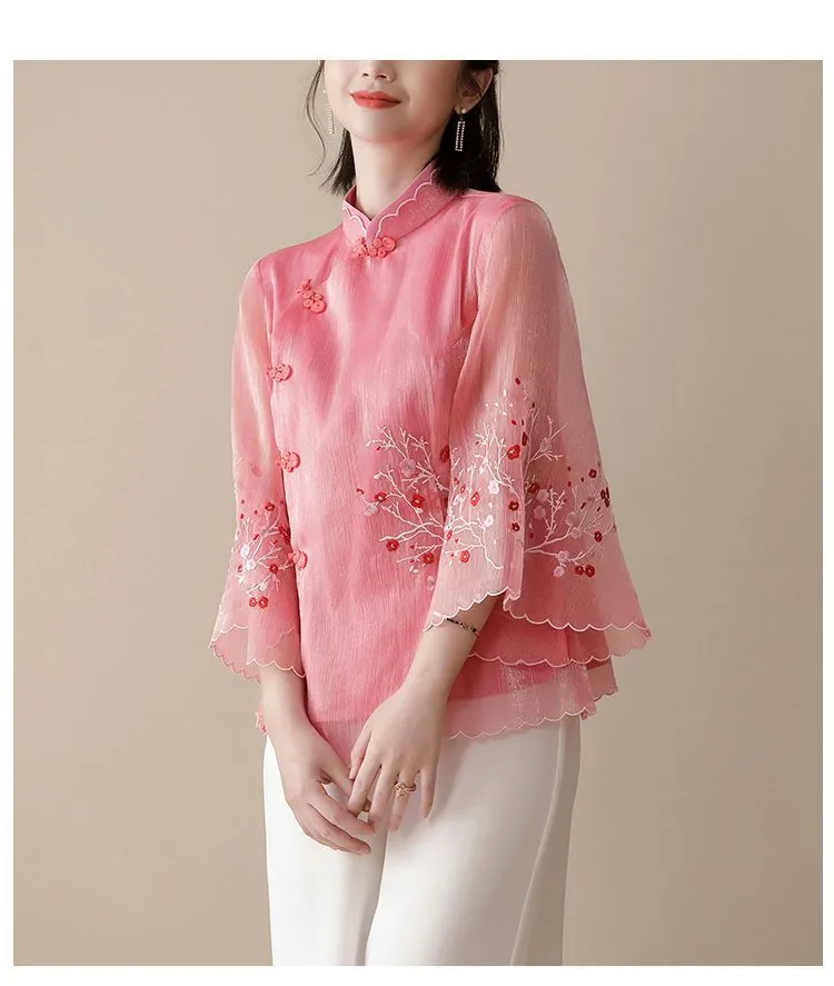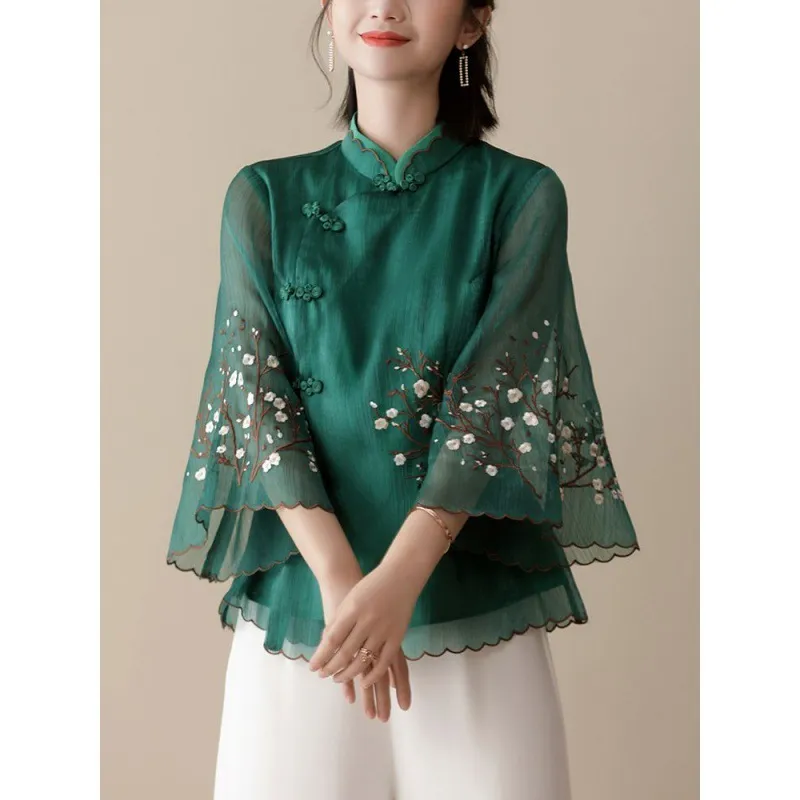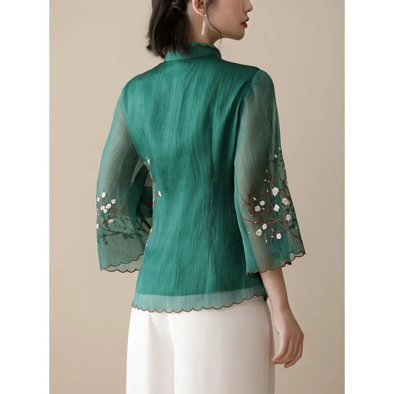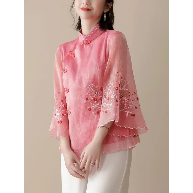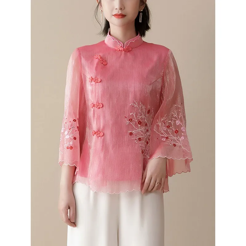 衣都精品- 新款宮廷風立領鏤空刺繡上衣