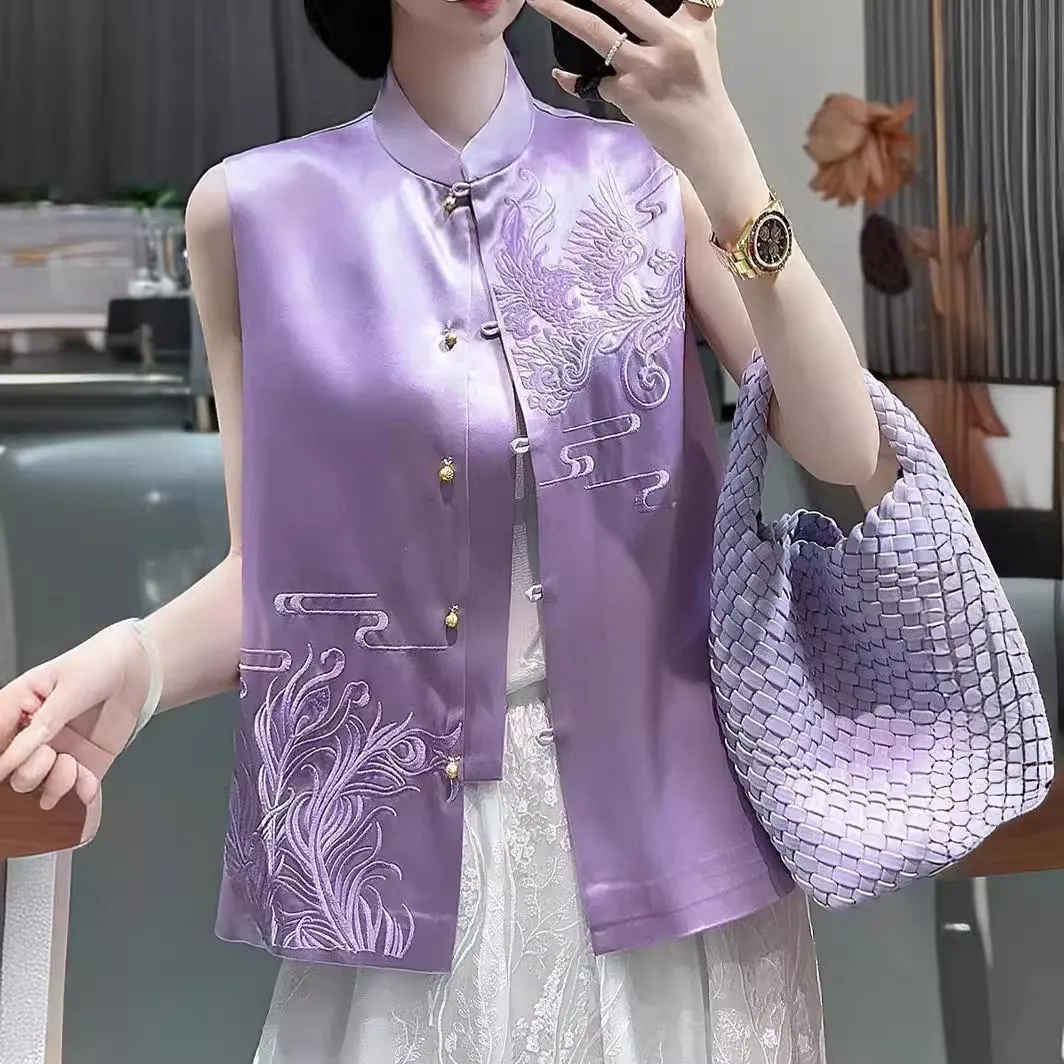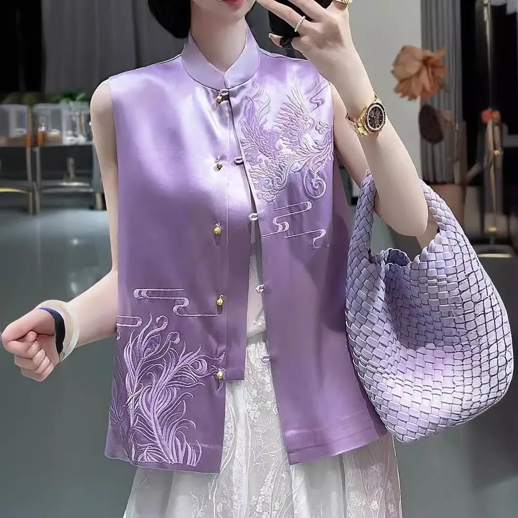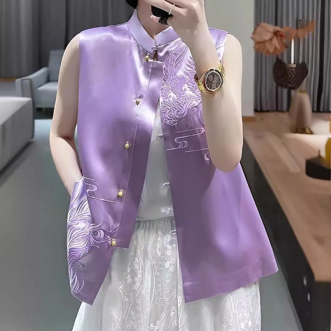 衣都精品- 新款復古刺繡中式盤扣織錦緞馬甲外套