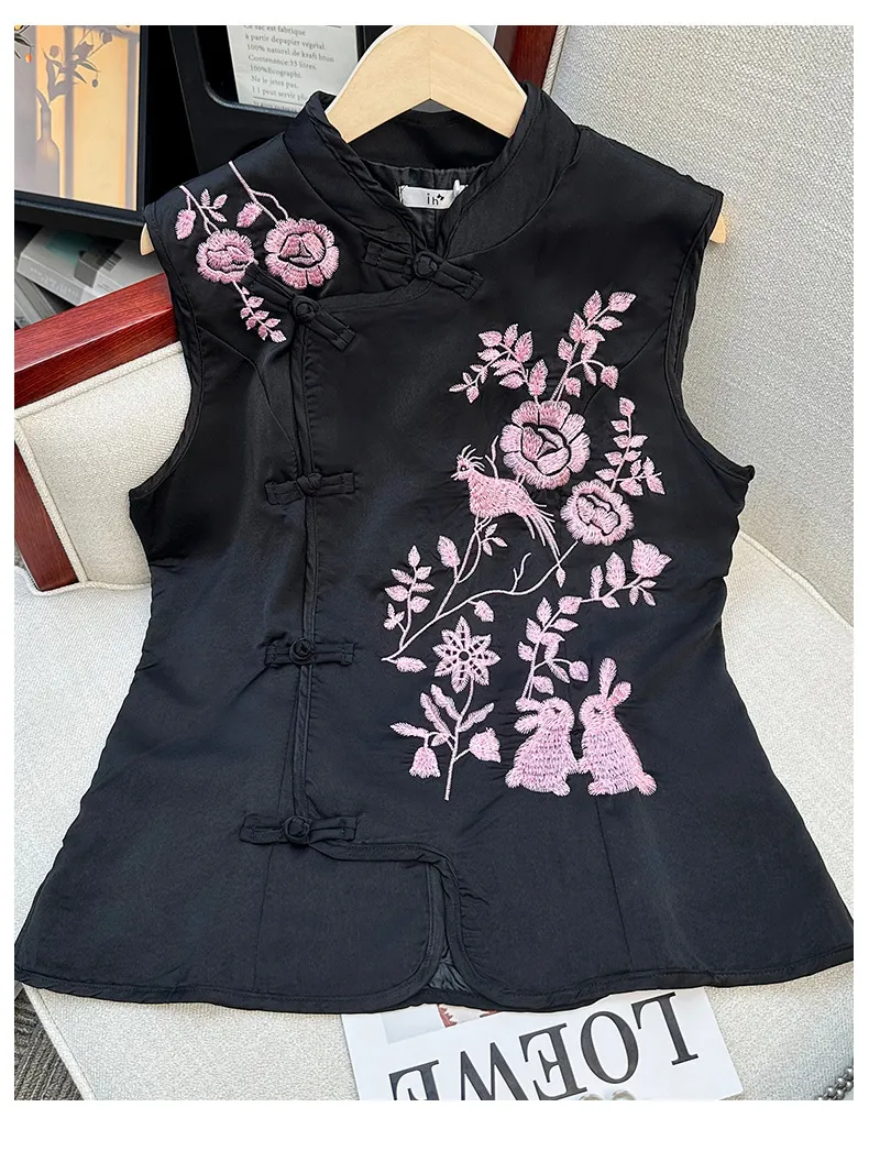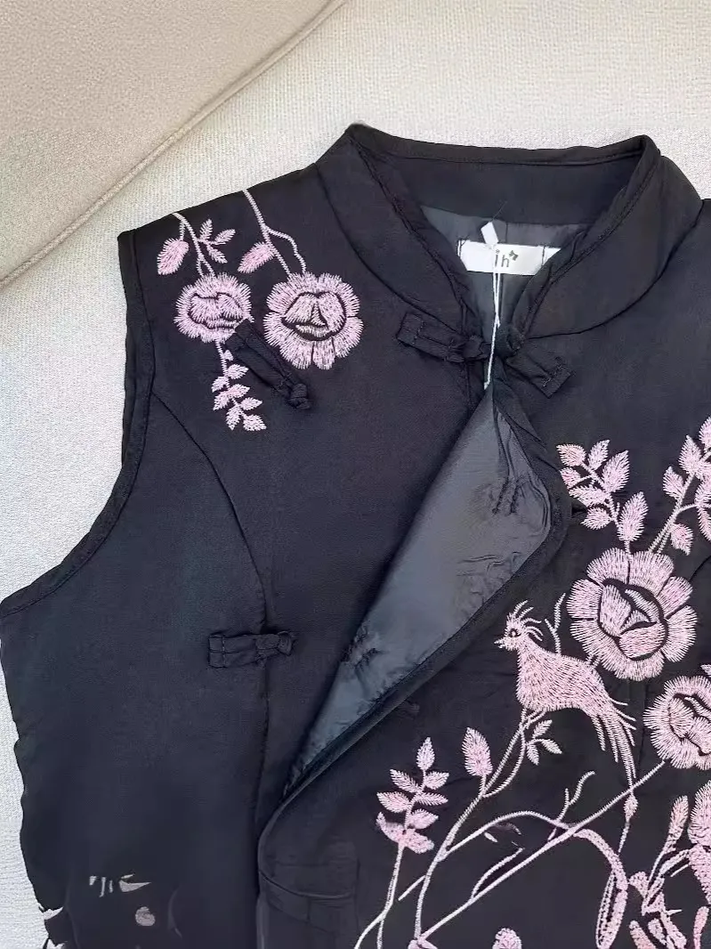 衣都精品- 新款復古刺繡中式盤扣織錦緞馬甲外套