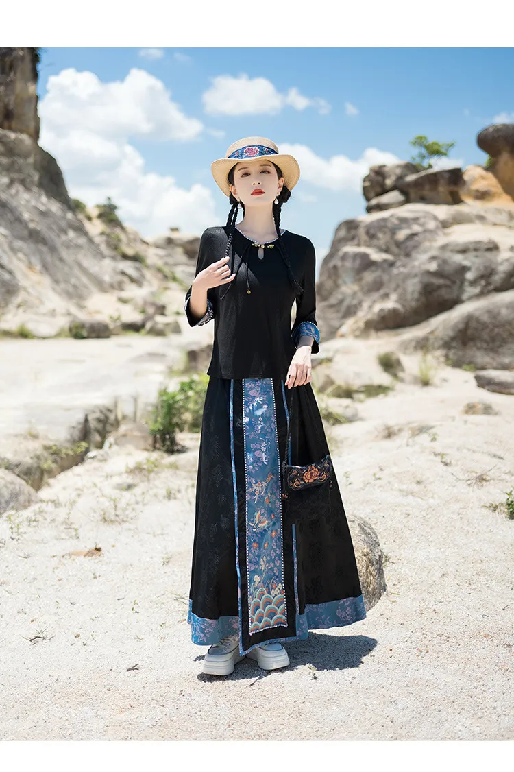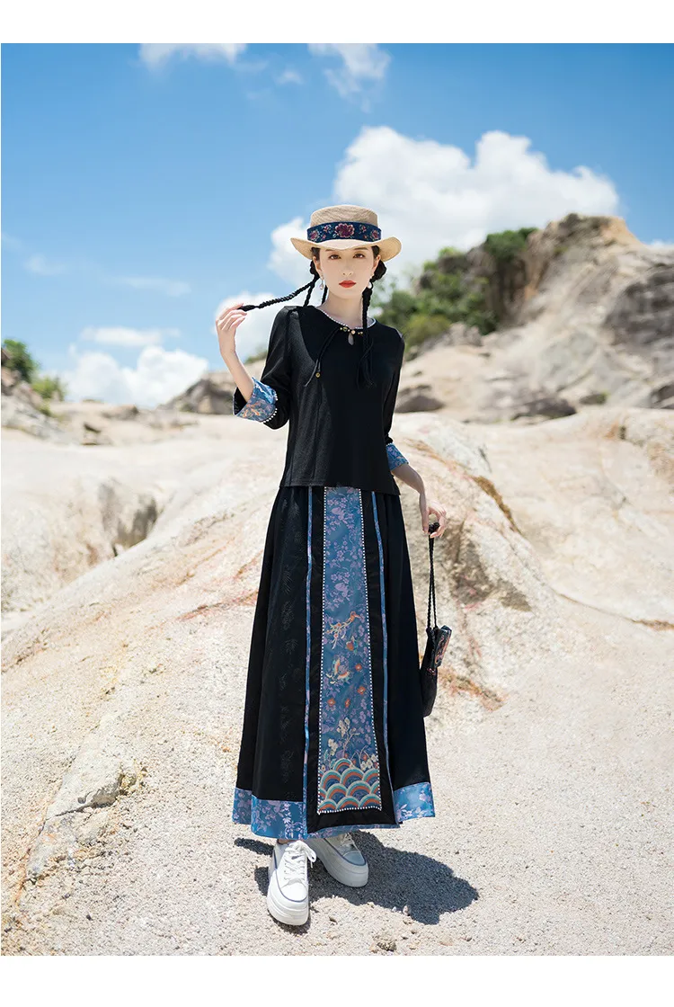 衣都精品- 新款民族風撞色刺繡圓領長袖上衣