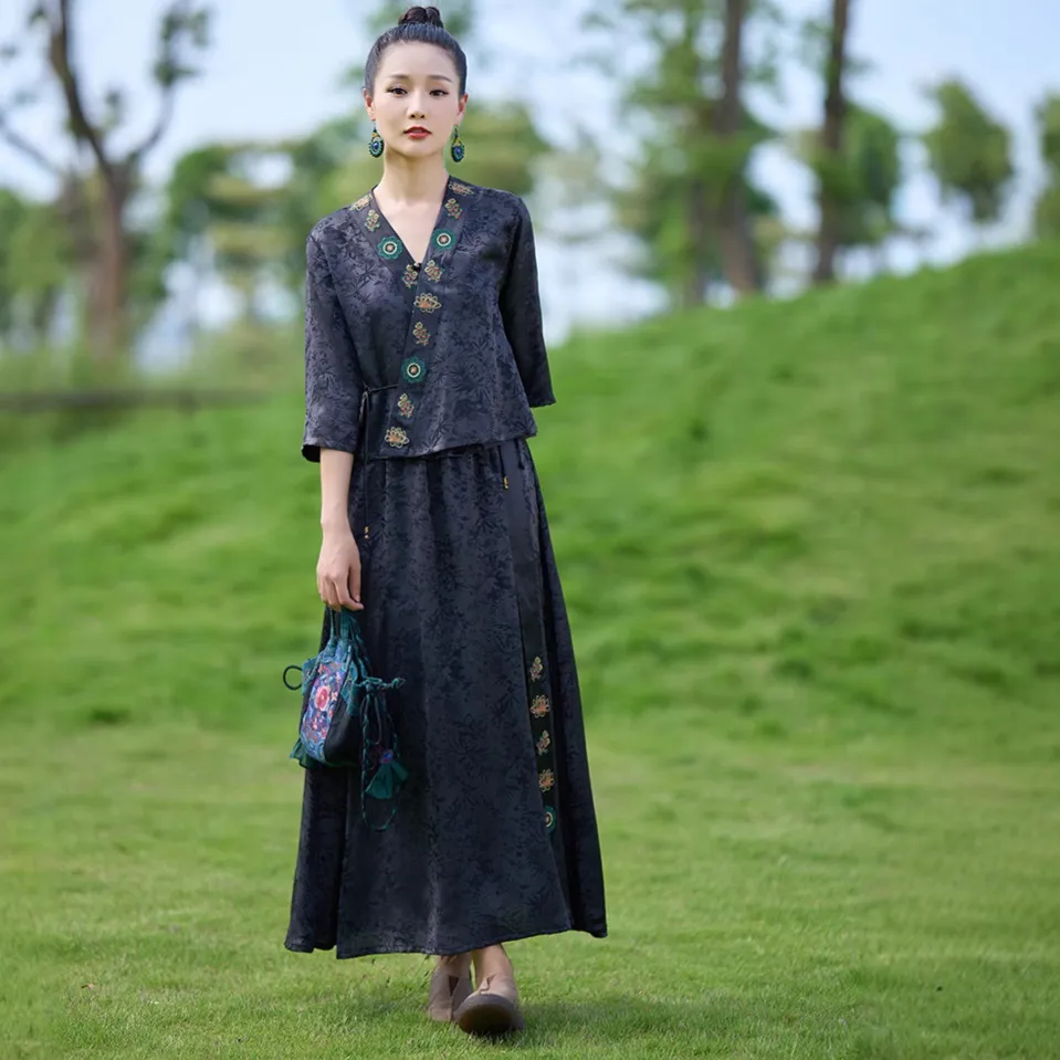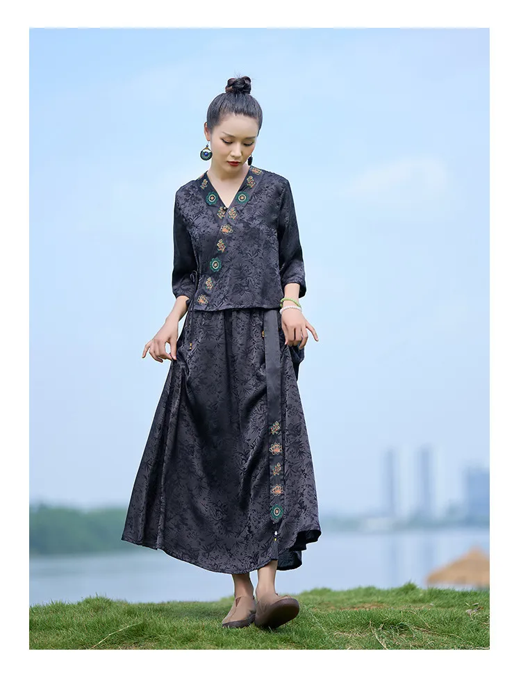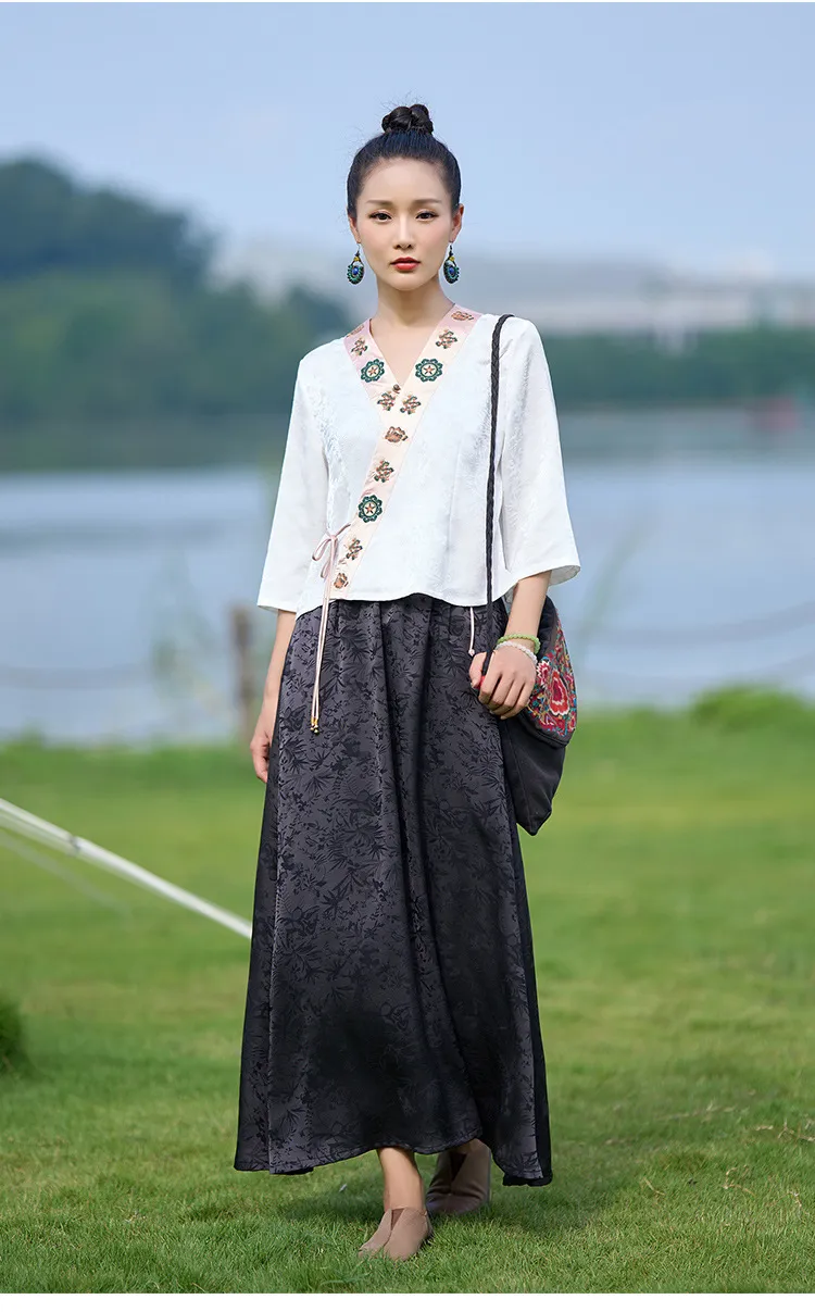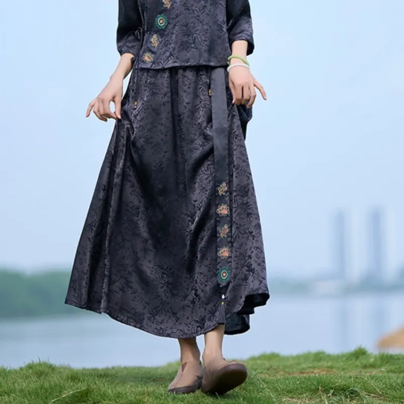 衣都精品- 新款民族風提花重工刺繡鬆緊腰半身裙