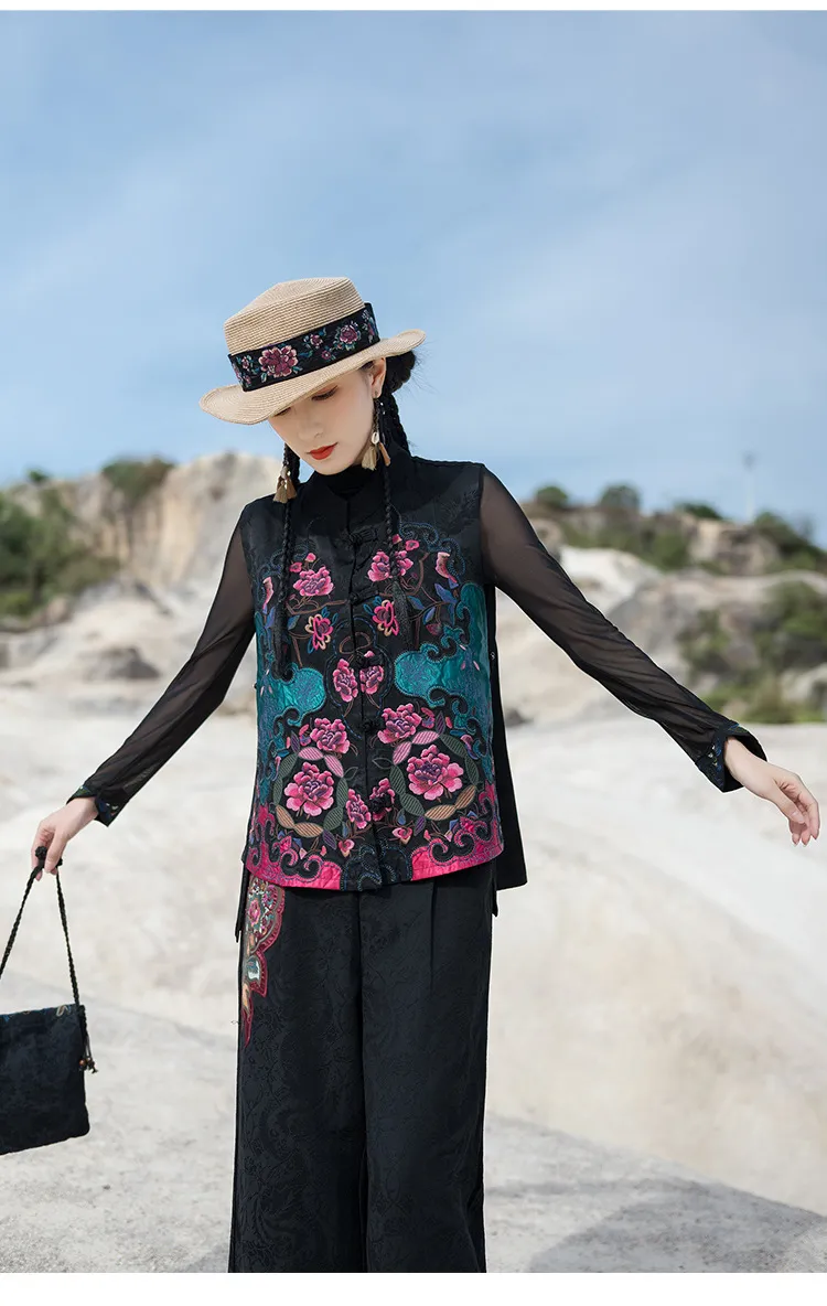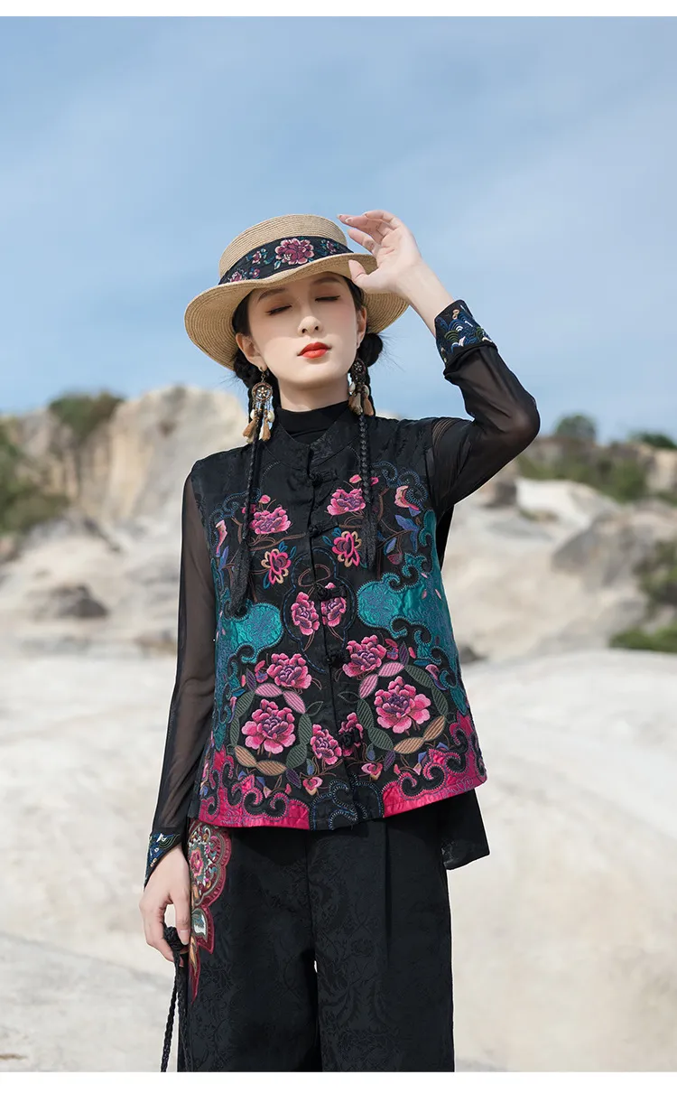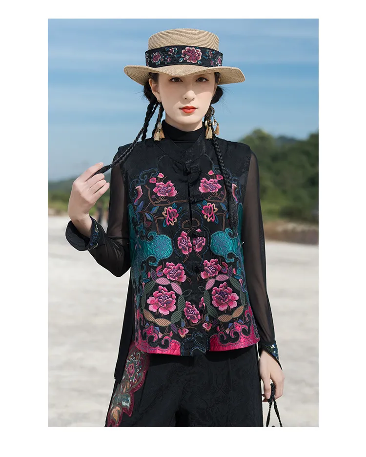 衣都精品- 新款民族風盤扣重工刺繡無袖馬甲外套