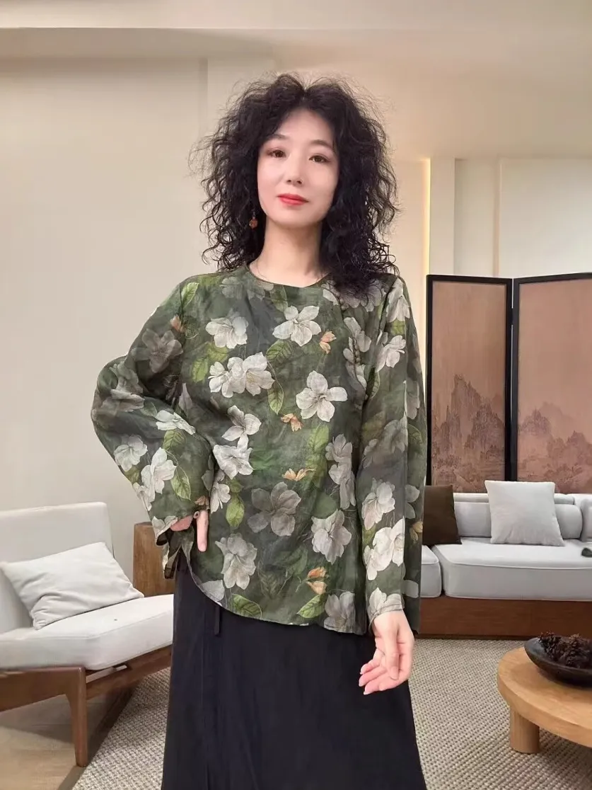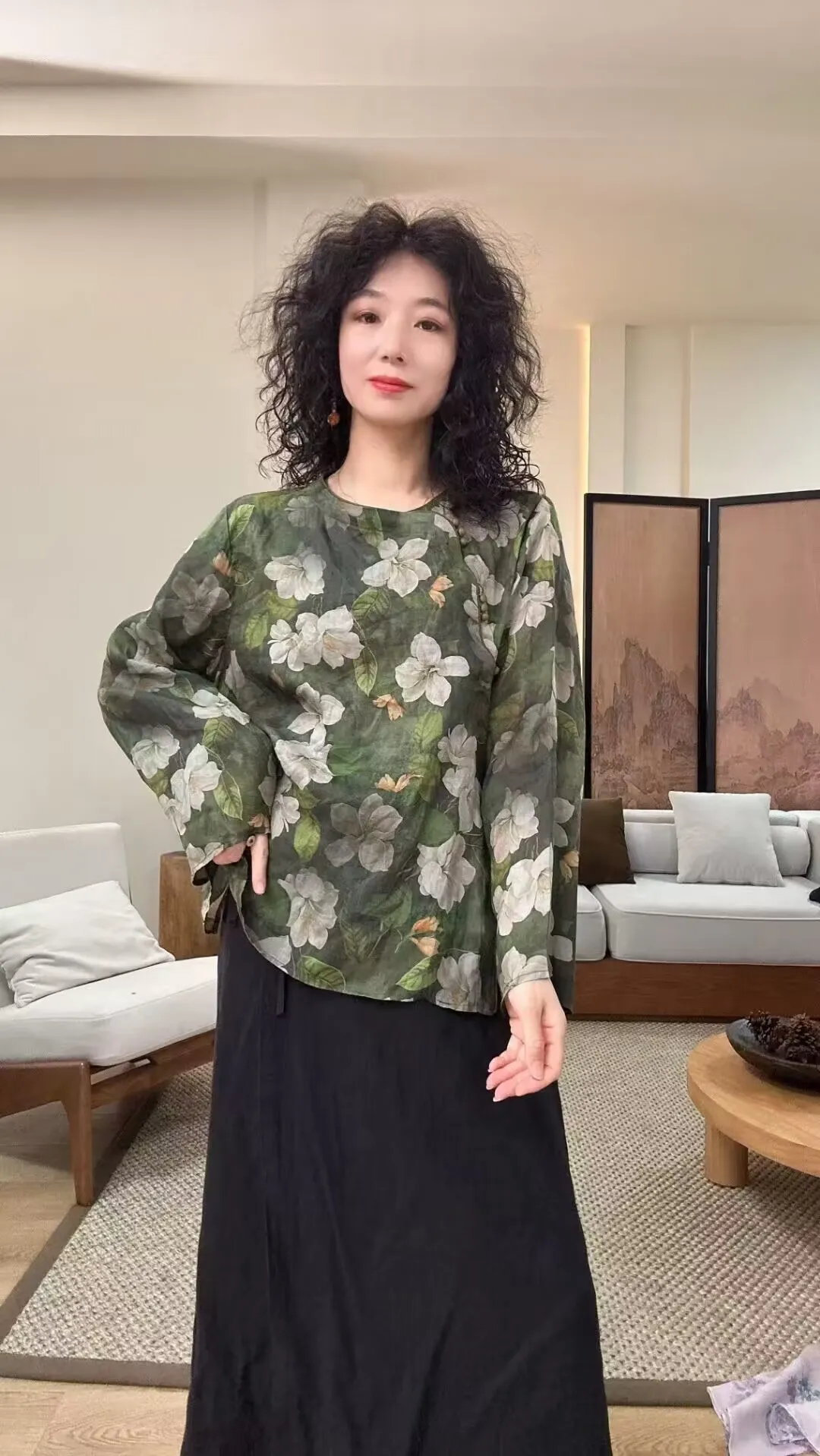 衣都精品- 新款印花斜襟中國風寬鬆百搭套頭上衣