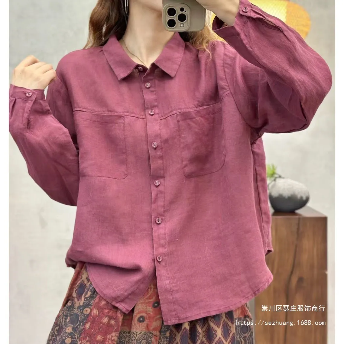 衣都精品- 新款印花斜襟中國風寬鬆百搭套頭上衣