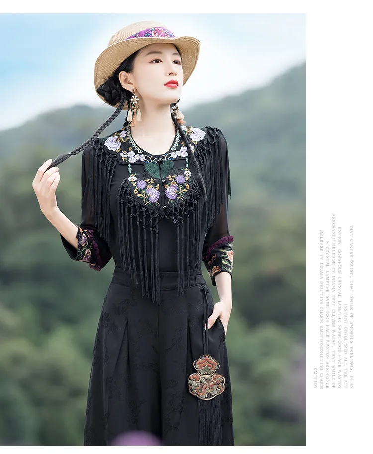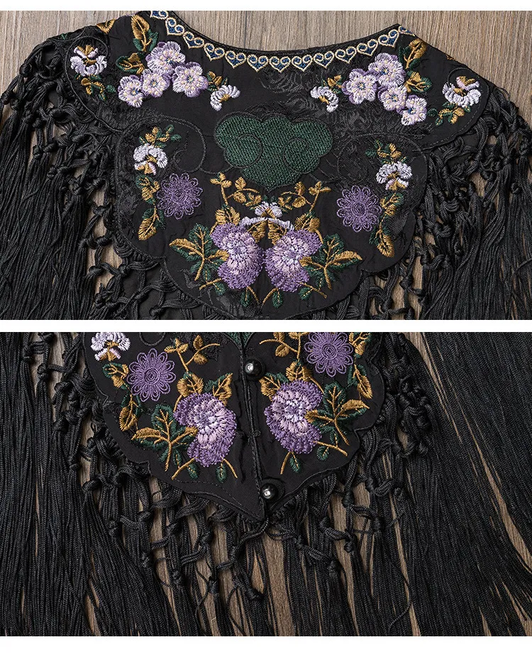 衣都精品- 新款民族風重工刺繡提花流蘇披肩上衣