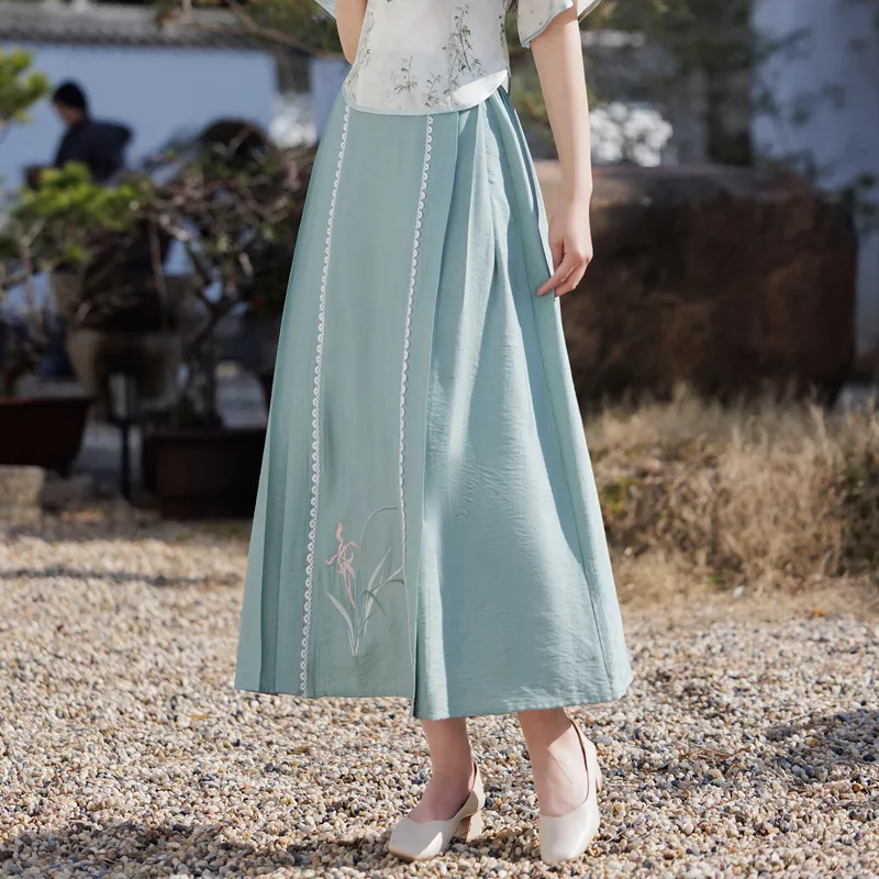 衣都精品- 新款復古文藝印花鬆緊腰半身裙