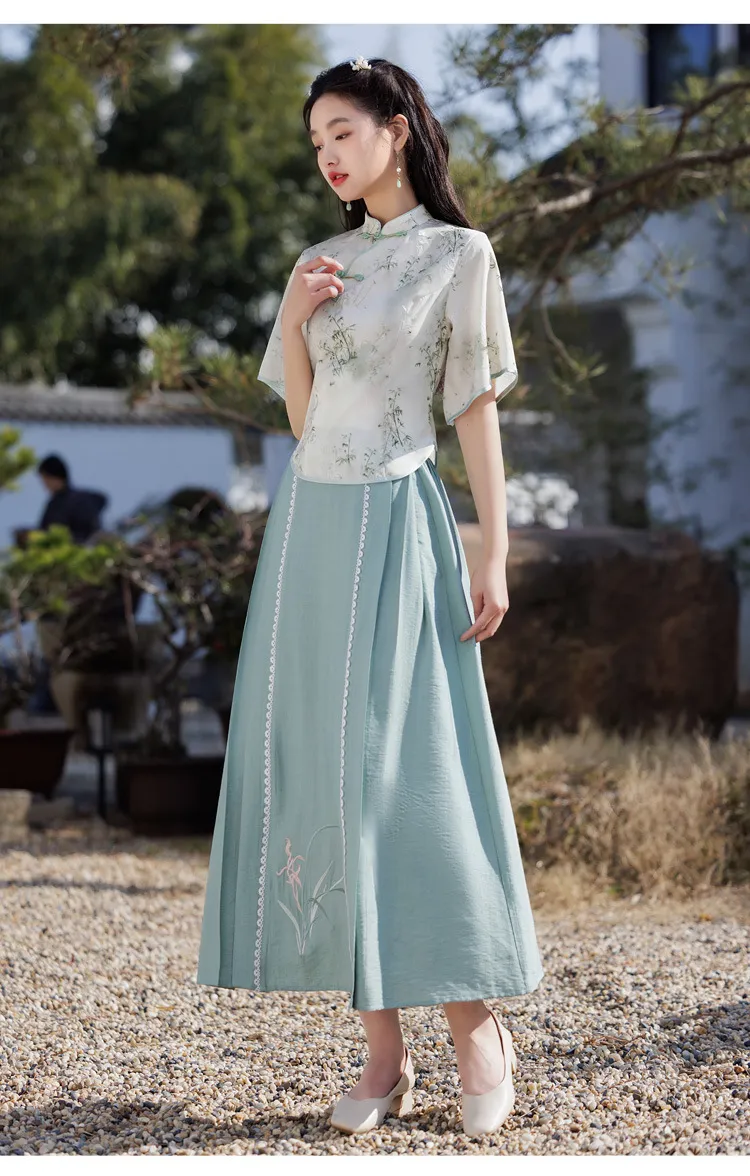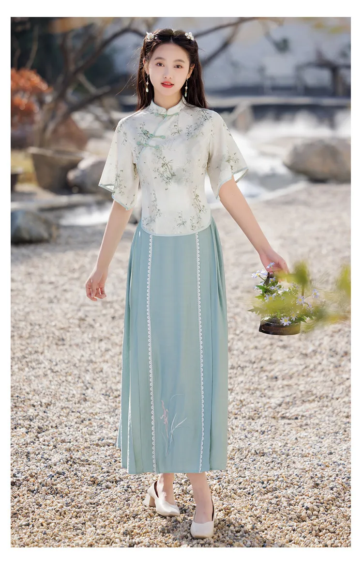 衣都精品- 新款中國風改良旗袍印花繫帶上衣