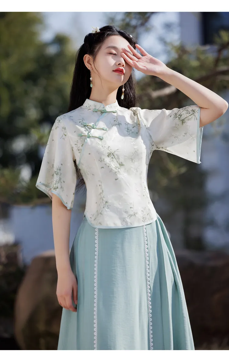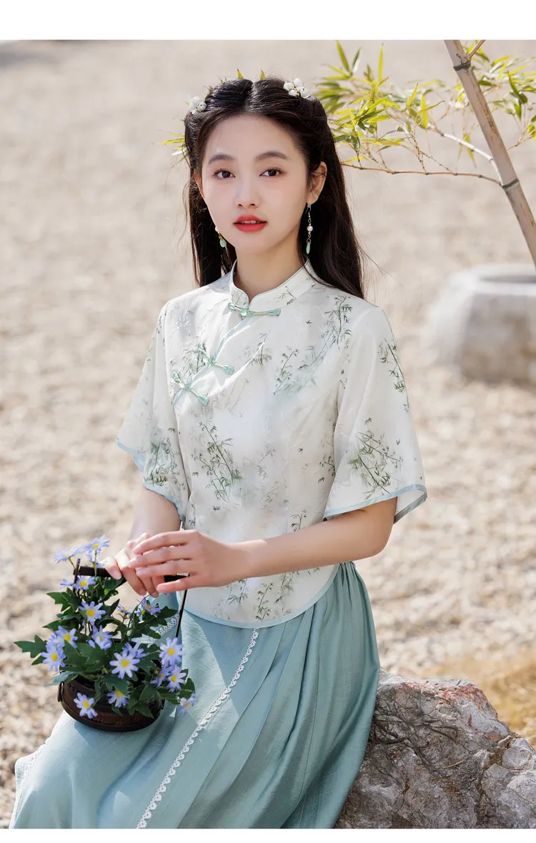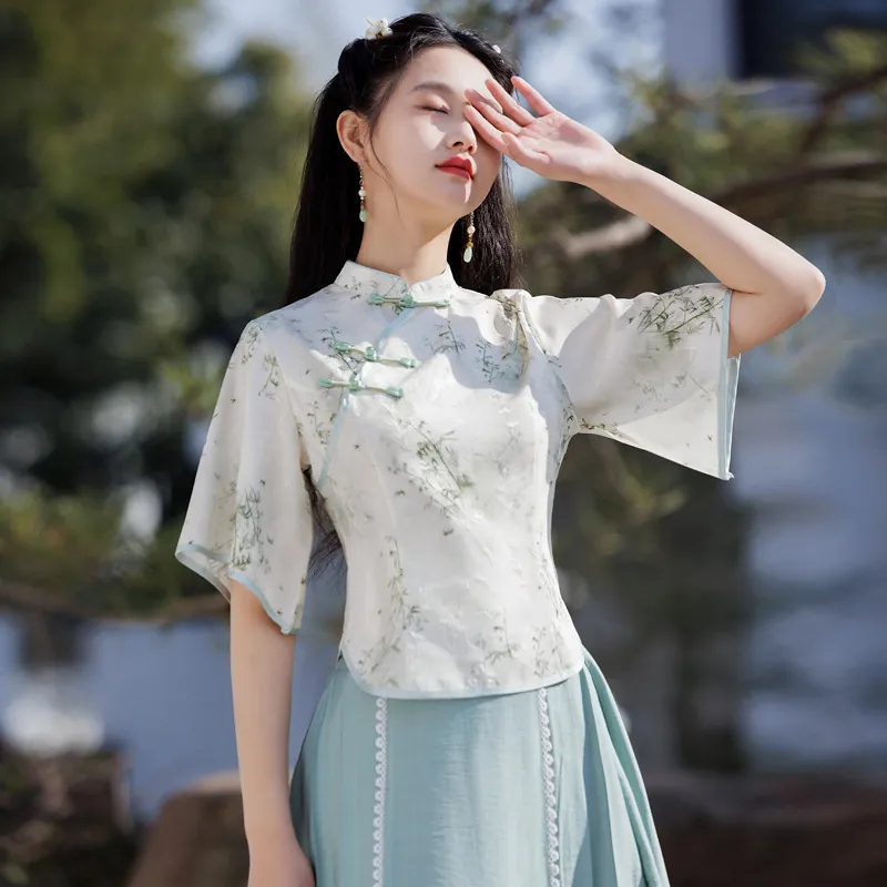 衣都精品- 新款唐裝中袖手繪改良旗袍上衣