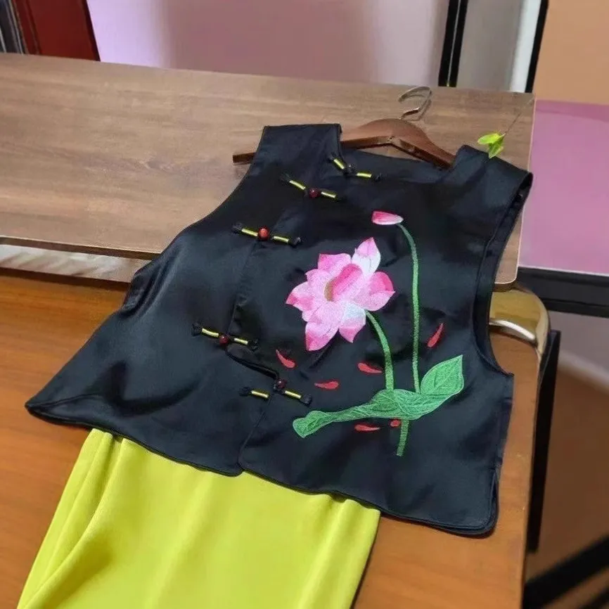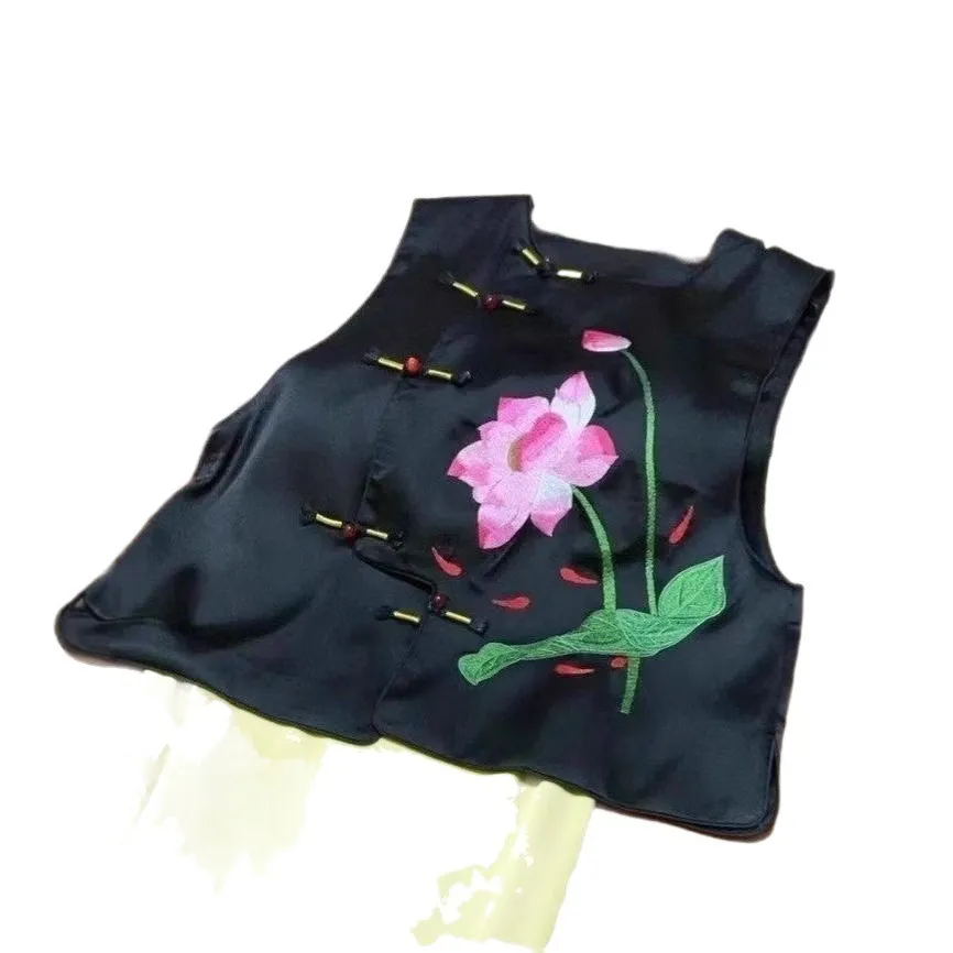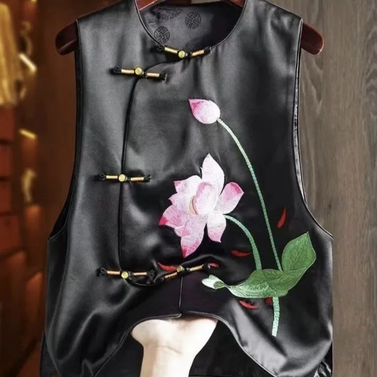 衣都精品- 新款荷花刺繡新中式緞面馬甲外套