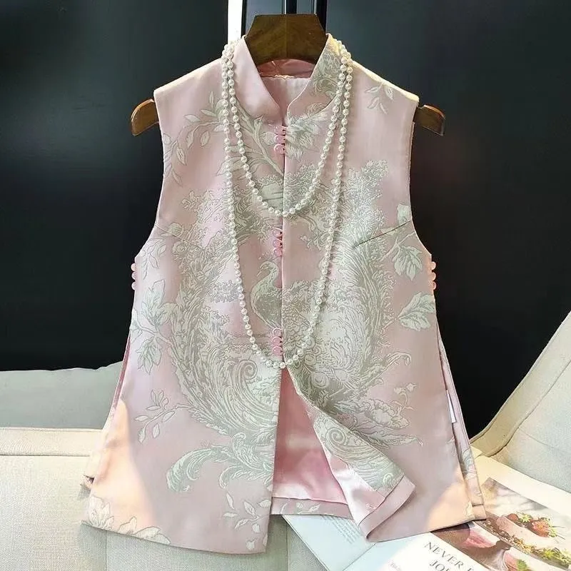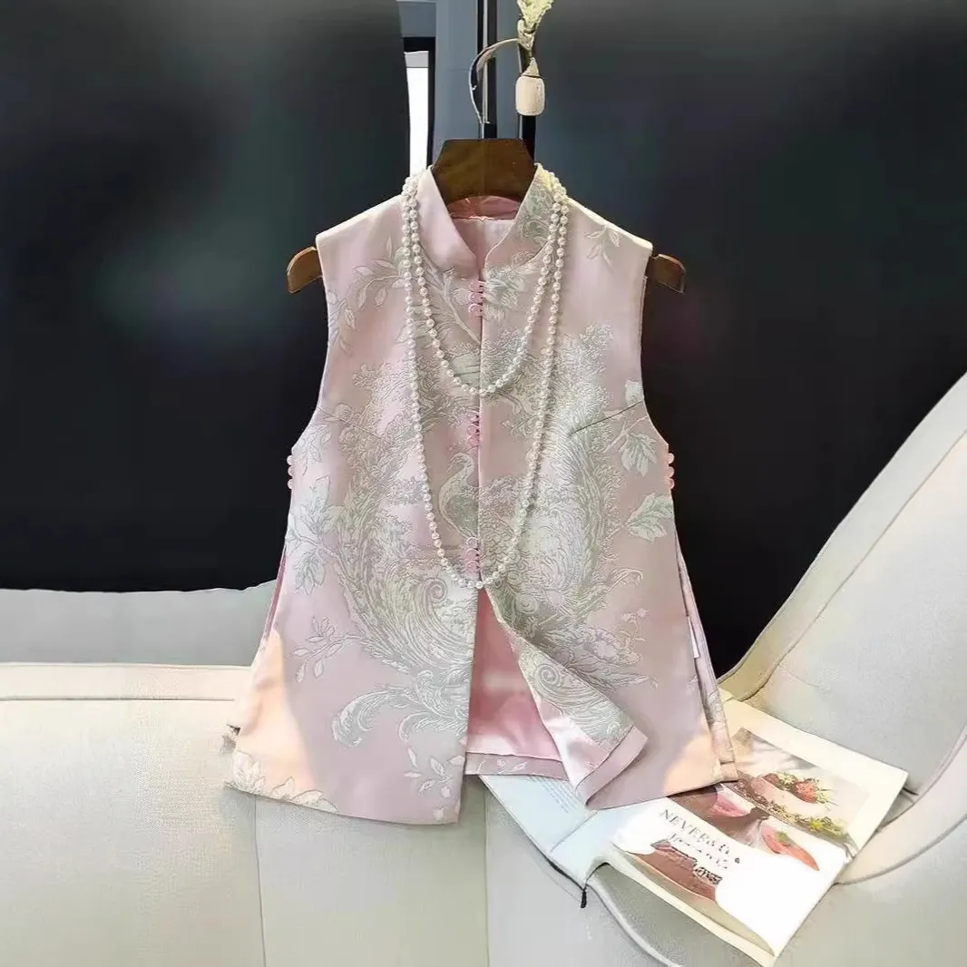 衣都精品- 新款荷花刺繡新中式緞面馬甲外套
