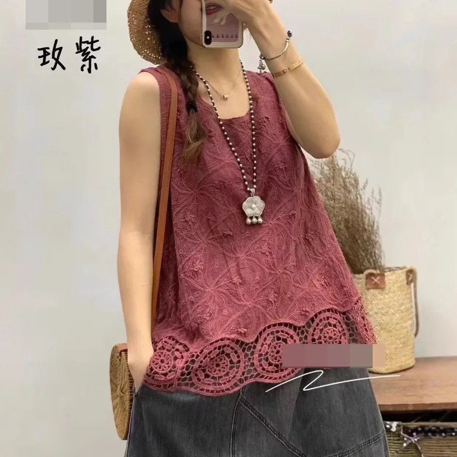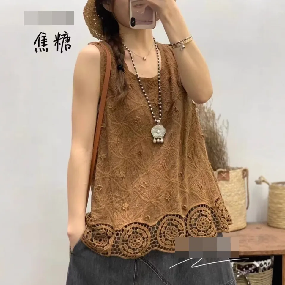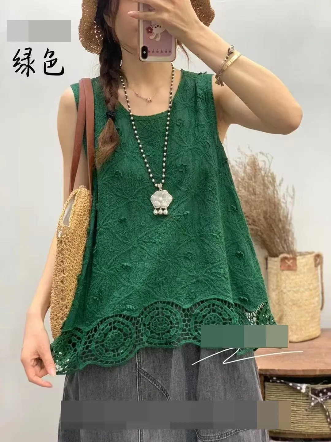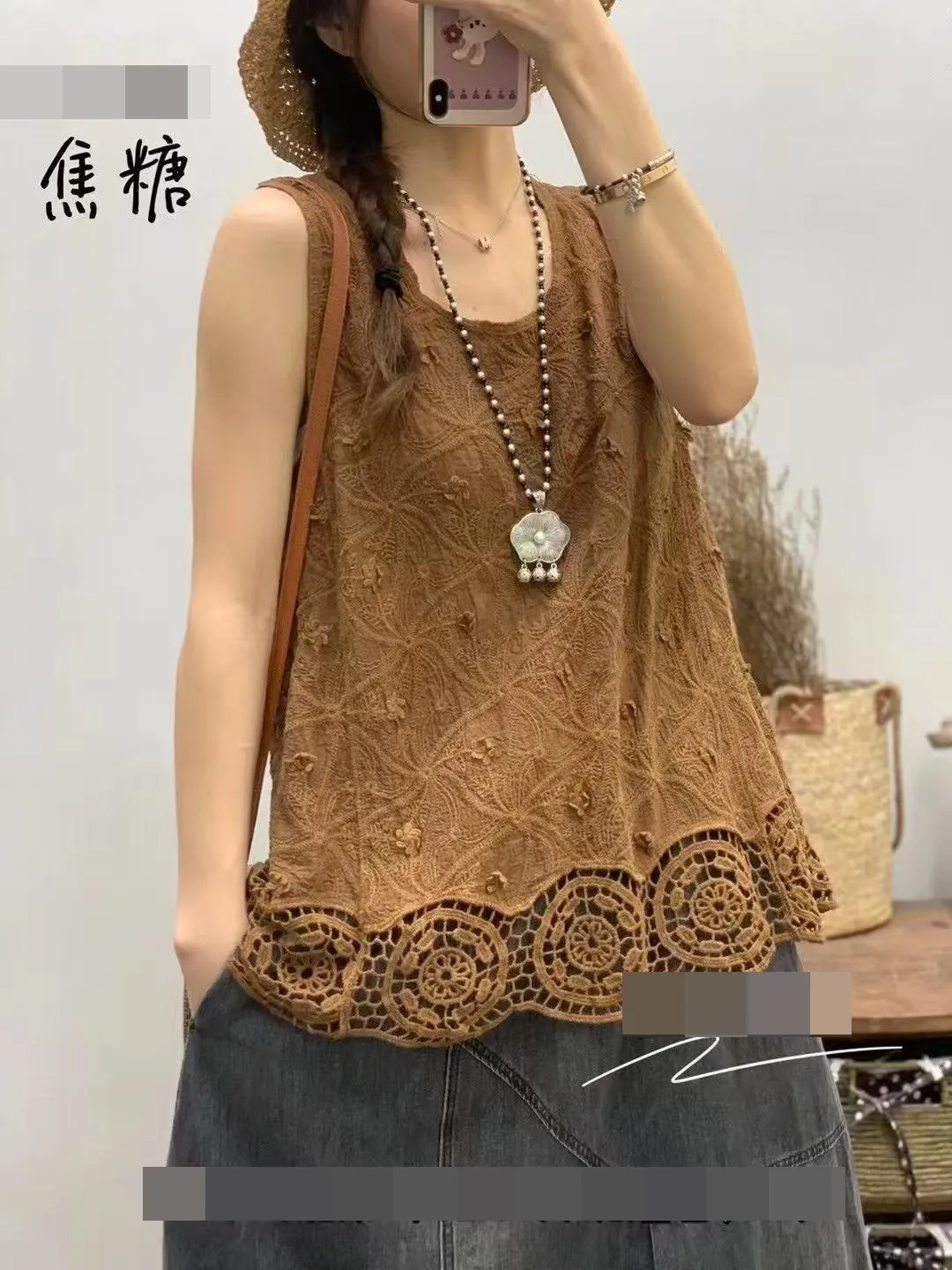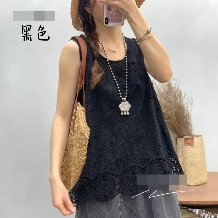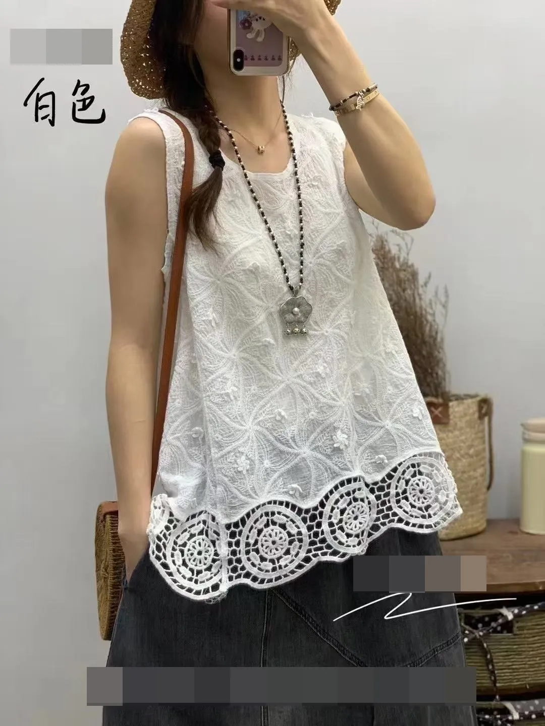 衣都精品- 新款日系甜美蕾絲繡花馬夾上衣