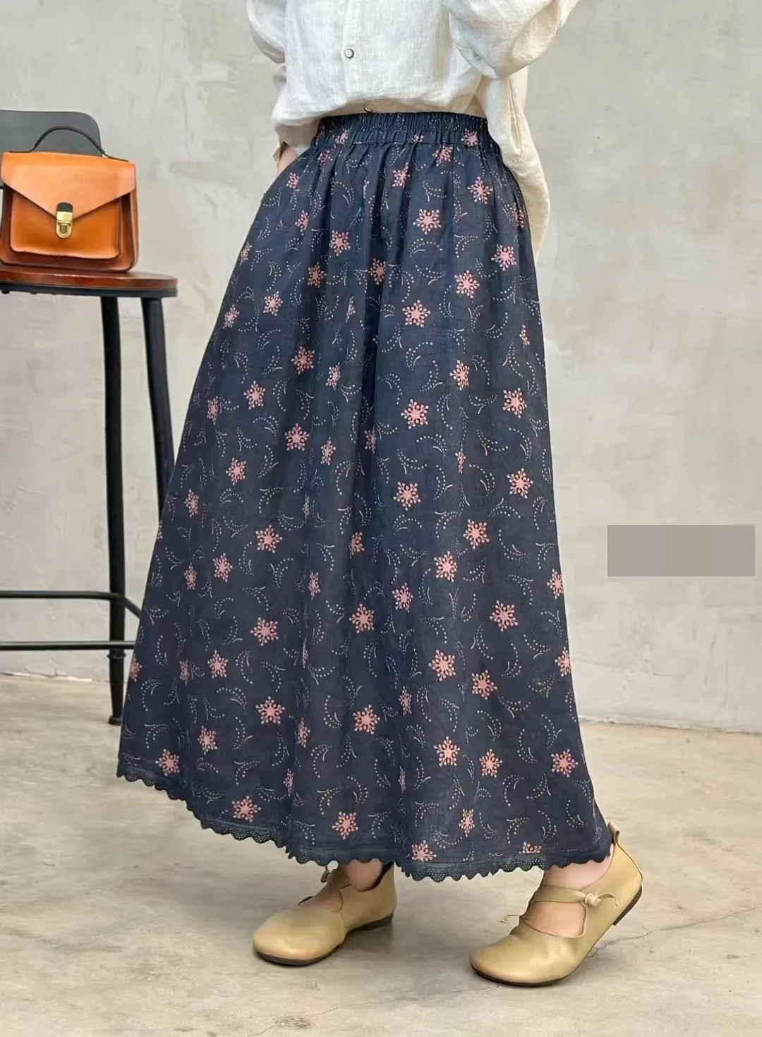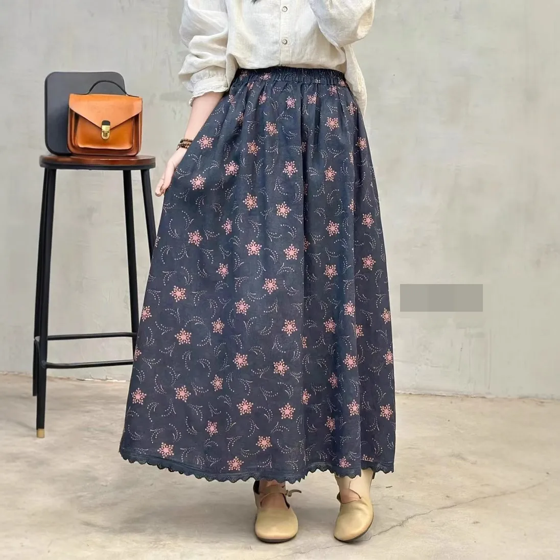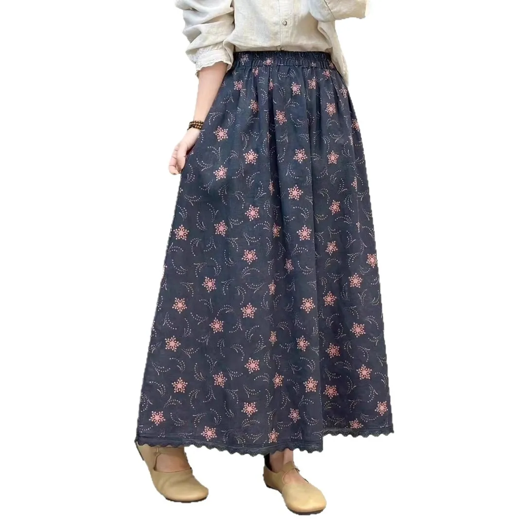 衣都精品- 新款復古印花大碼蕾絲邊半身裙
