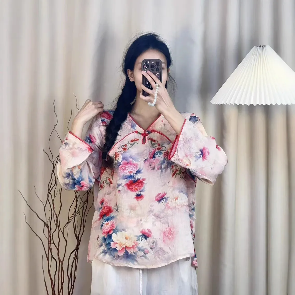 衣都精品- 新款中國風印花茶服寬鬆套頭上衣