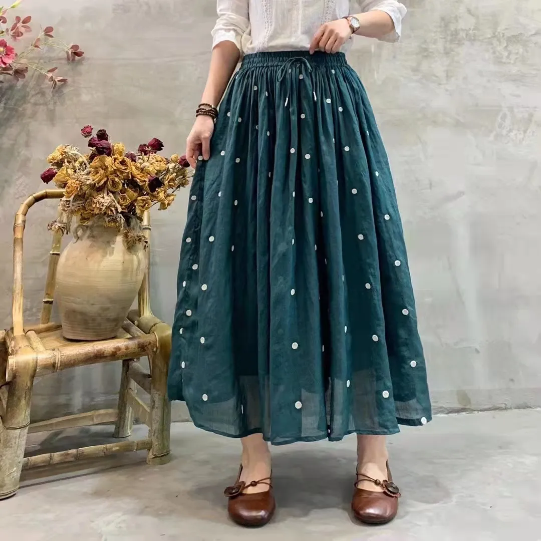 衣都精品- 新款復古包邊波點刺繡大擺半身裙