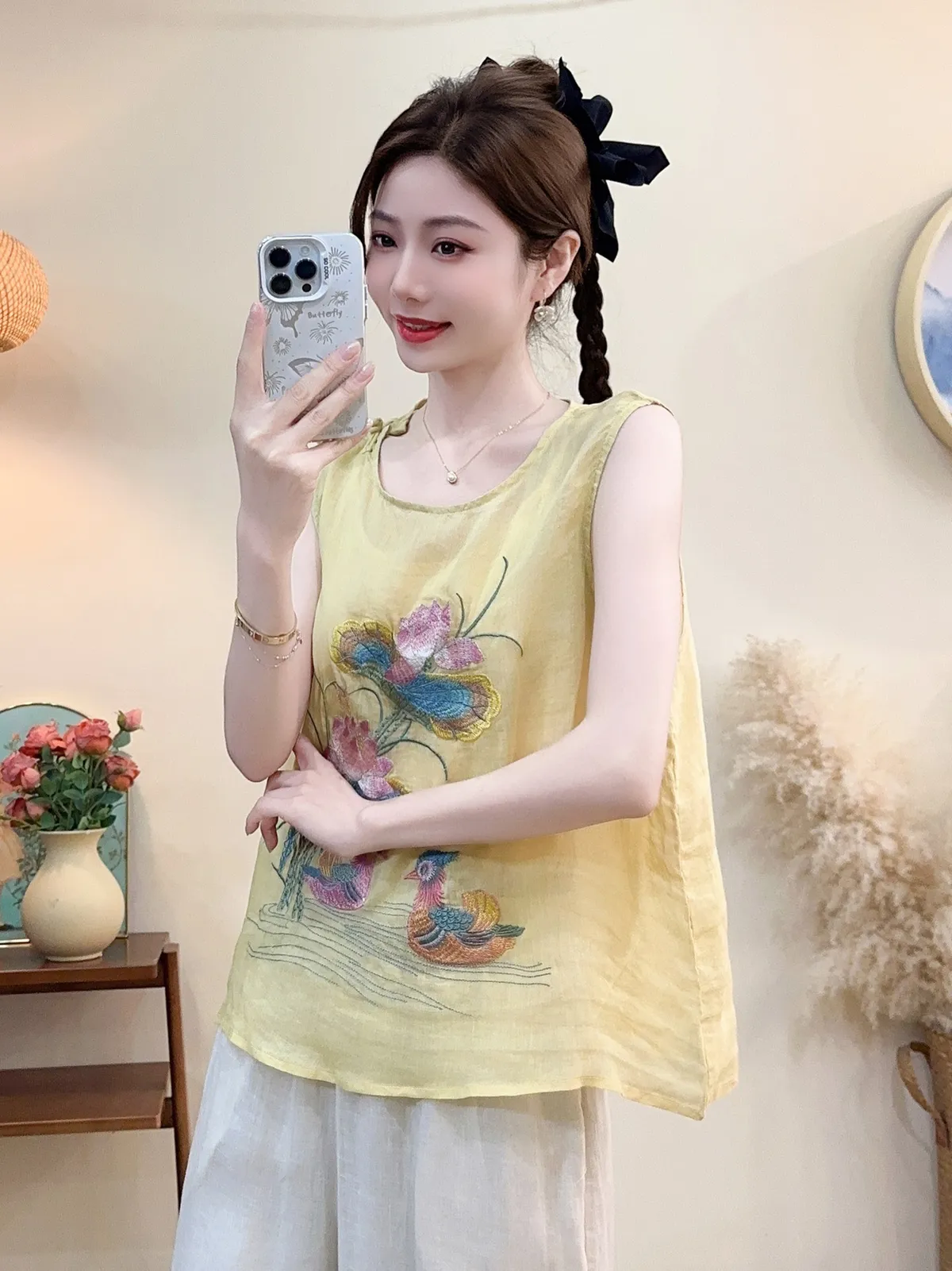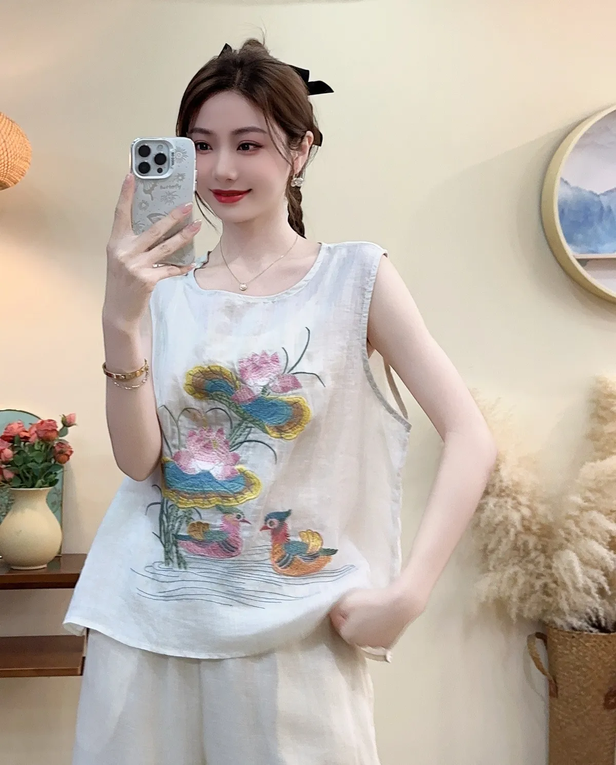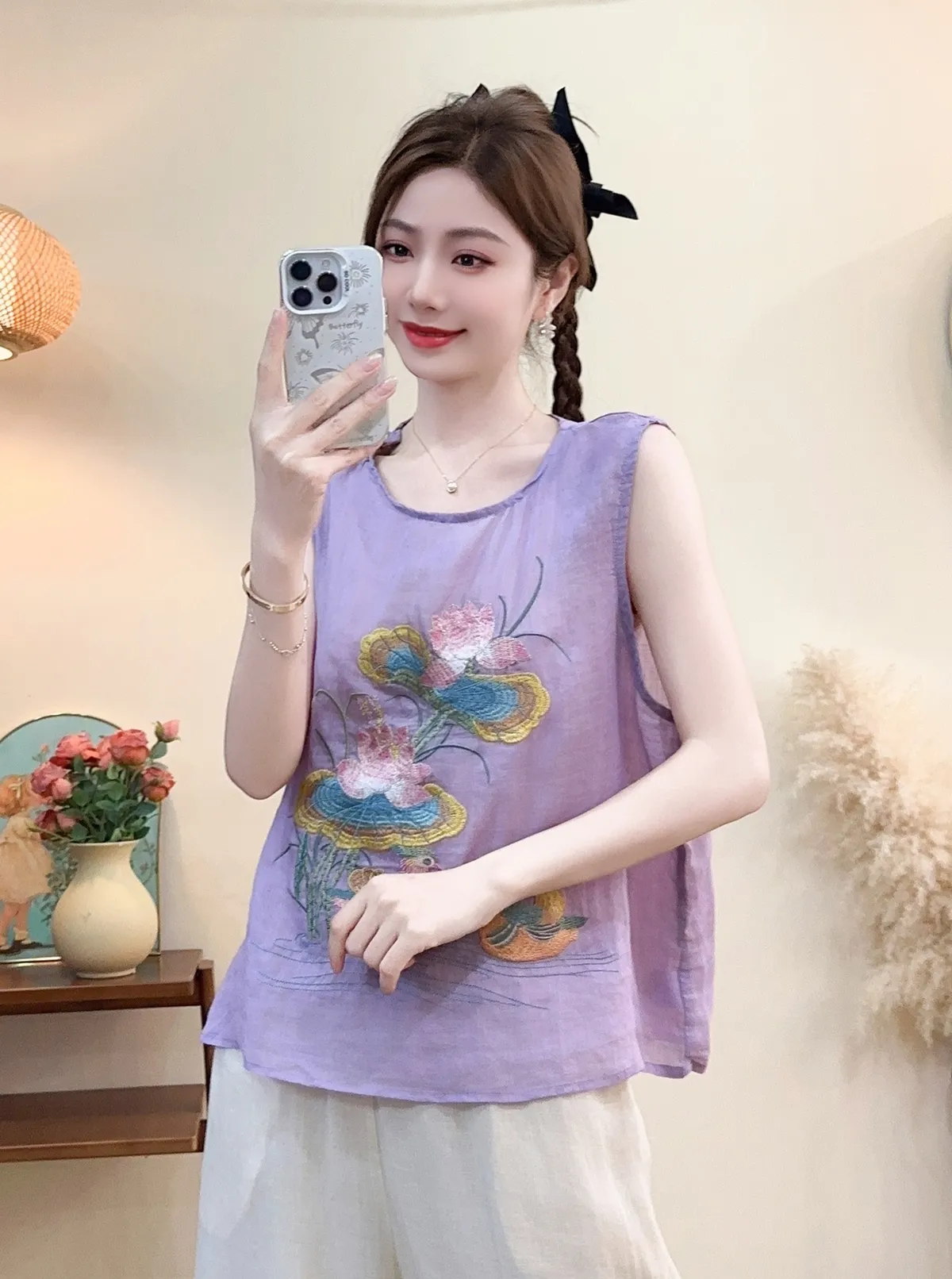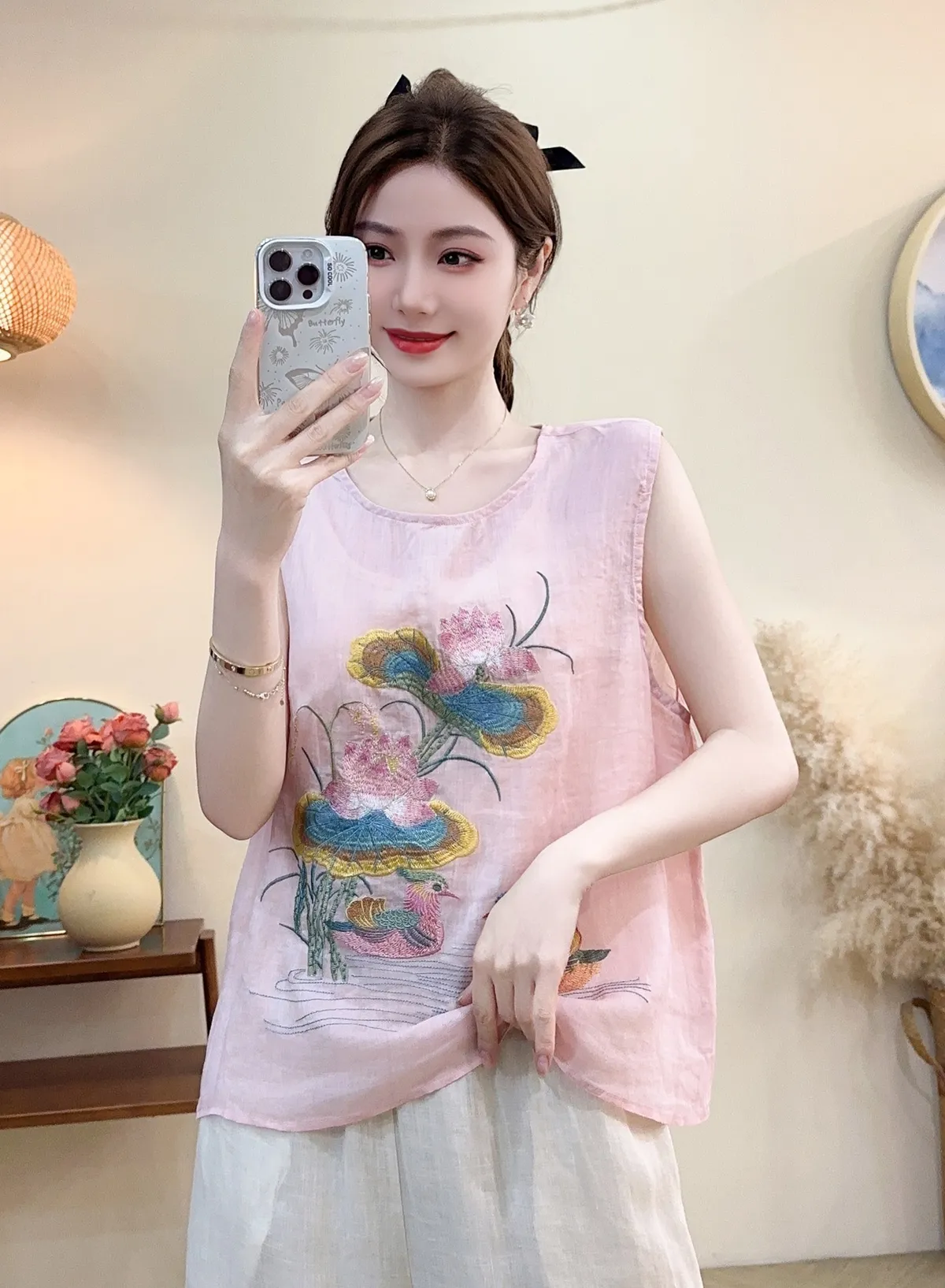 衣都精品- 新款文藝圓領重工刺繡背心上衣