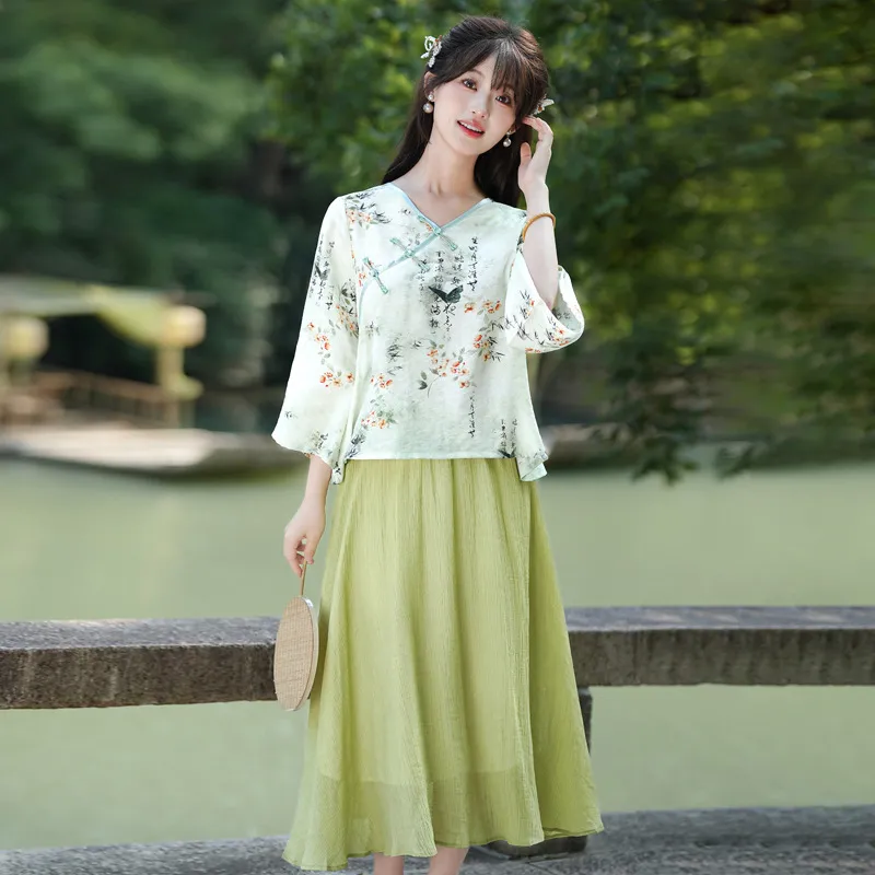 衣都精品- 新款復古文藝新中式旗袍水墨畫短款上衣