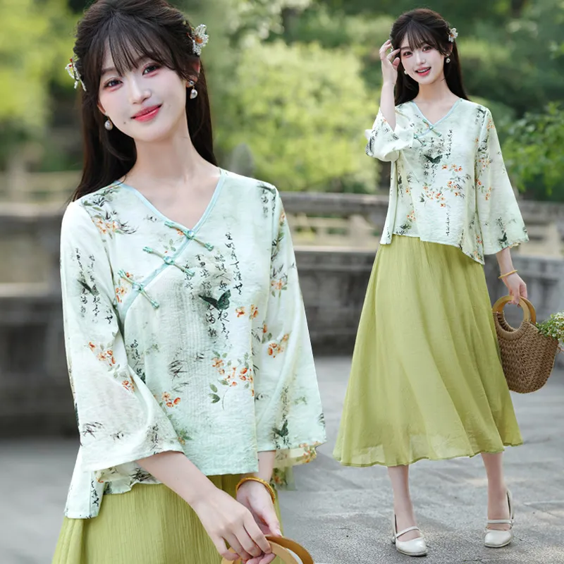 衣都精品- 新款短袖大碼中式禪意茶服上衣