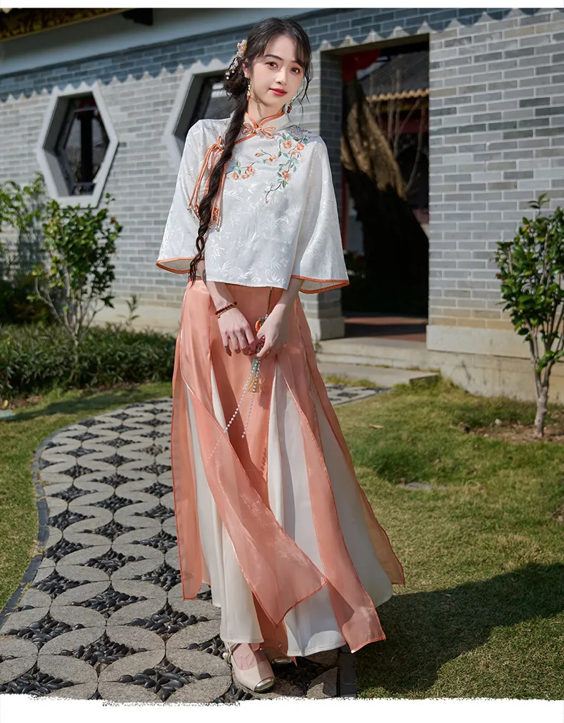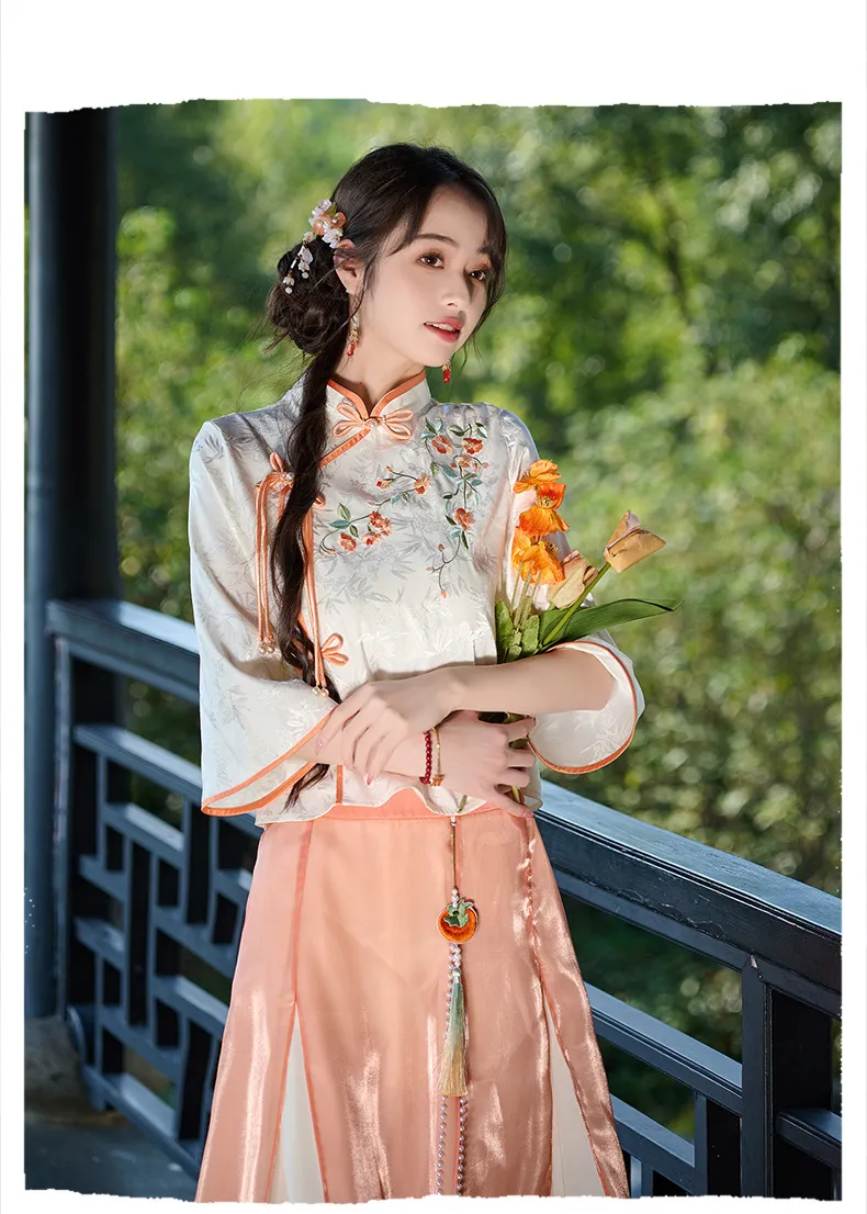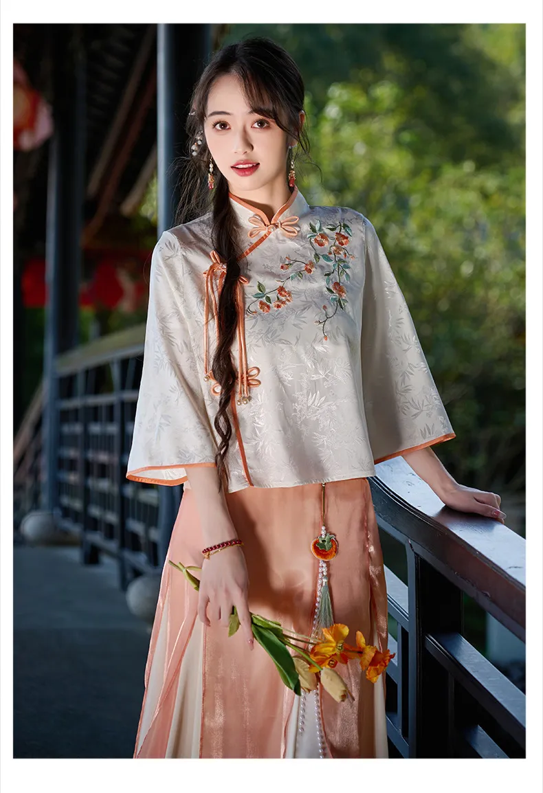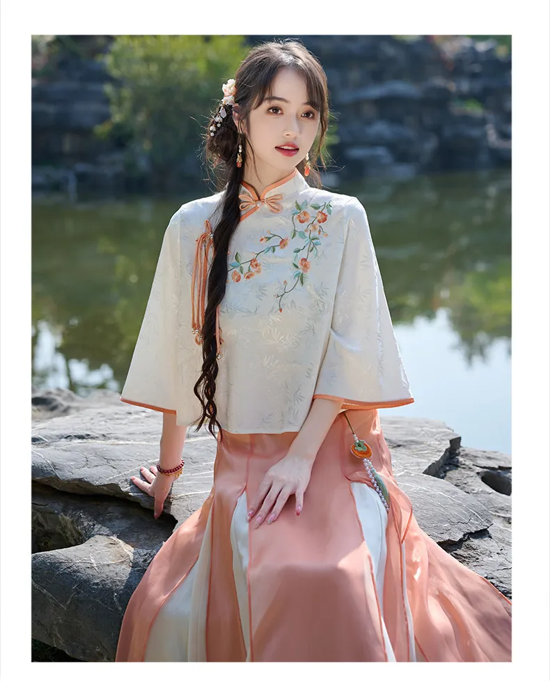 衣都精品- 新款氣質古典重工提花刺繡盤扣上衣+改良半身裙套裝
