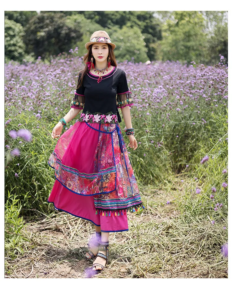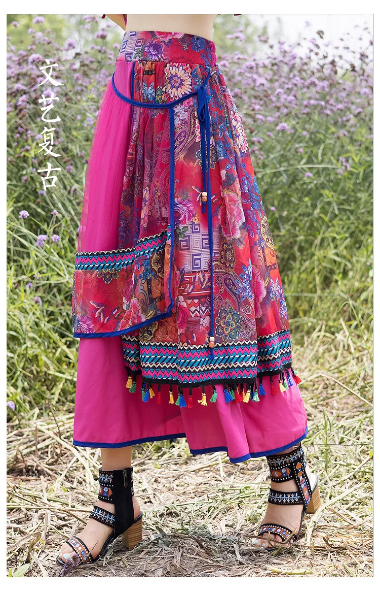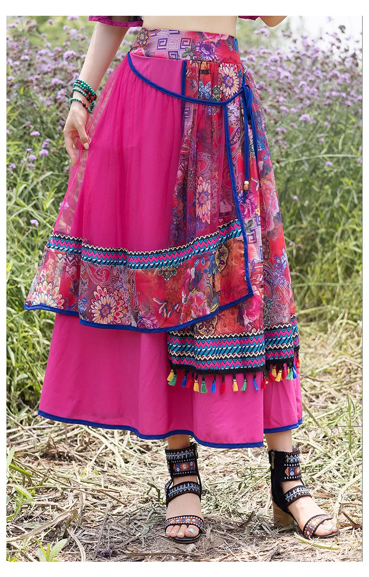 衣都精品- 新款民族風印花流蘇網紗半身裙