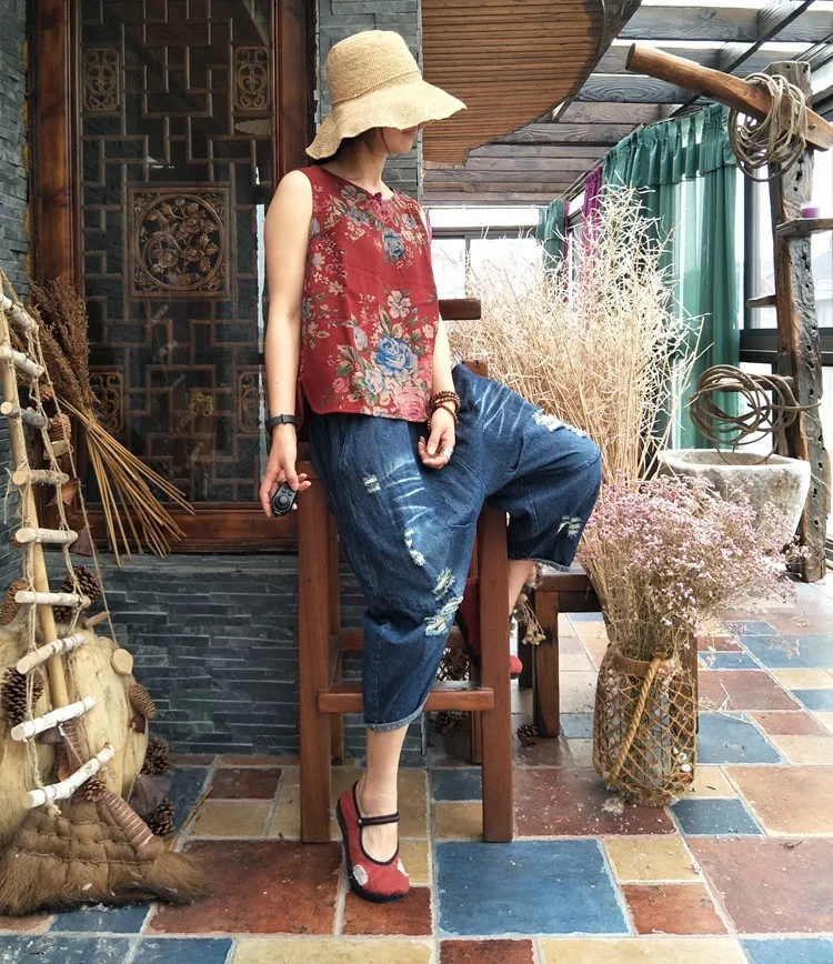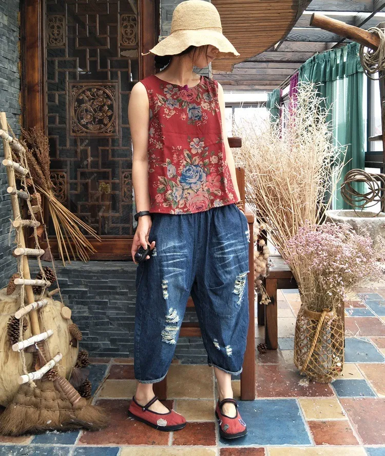 衣都精品- 新款棉麻盤扣寬鬆小背心上衣