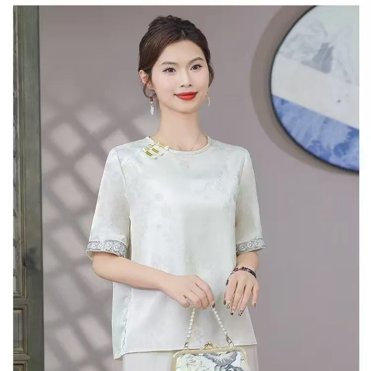 衣都精品- 新款短袖薄款圓領盤扣上衣