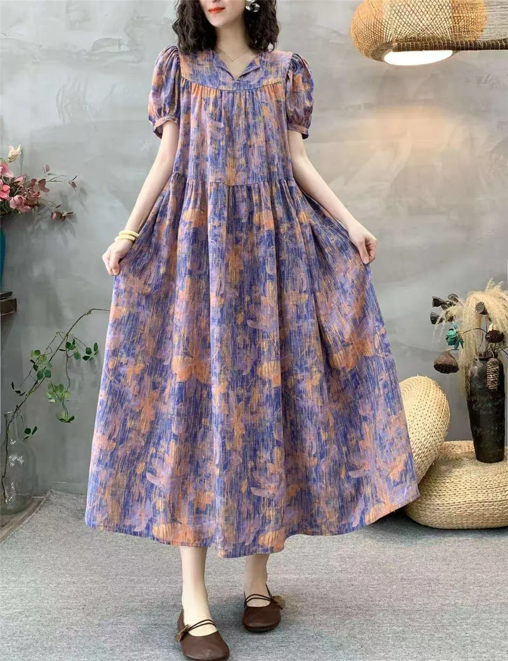 衣都精品- 新款碎花長款數碼印花連衣裙