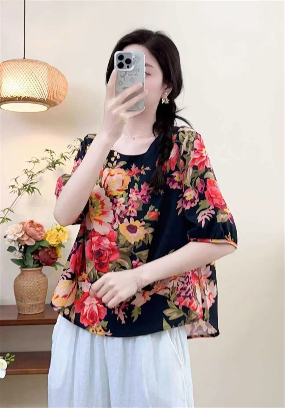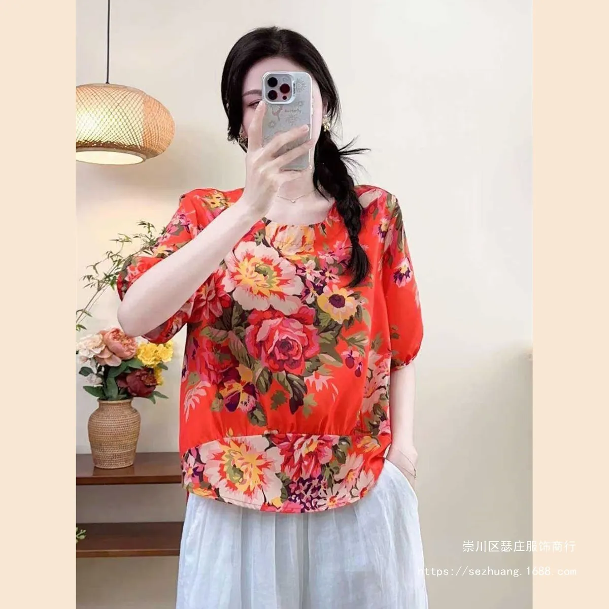 衣都精品- 新款輕薄套頭大碼數碼印花上衣