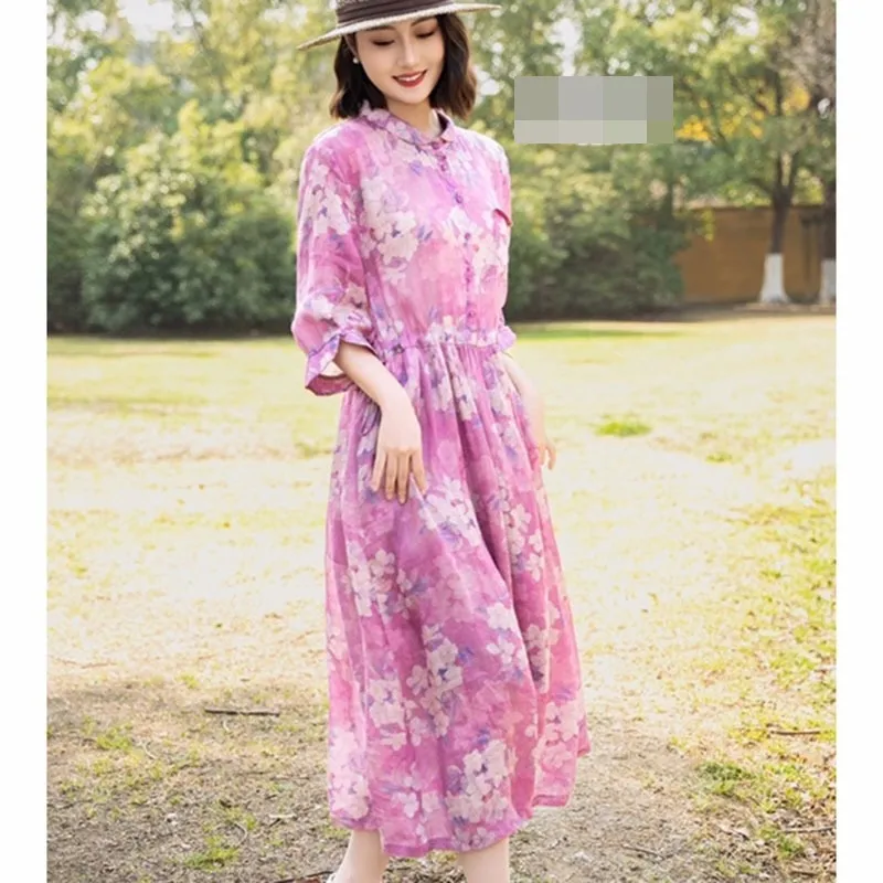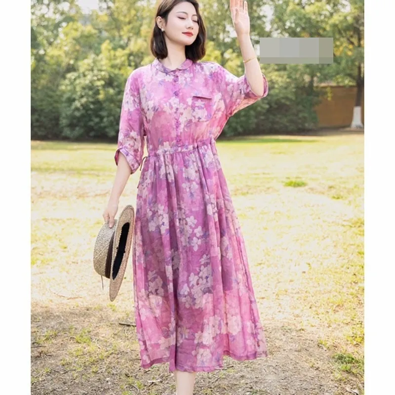 衣都精品- 新款復古寬鬆休閒收腰顯瘦印花連衣裙