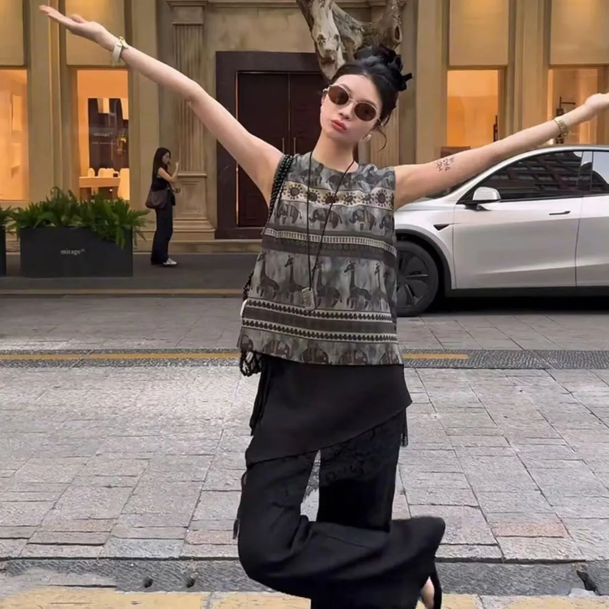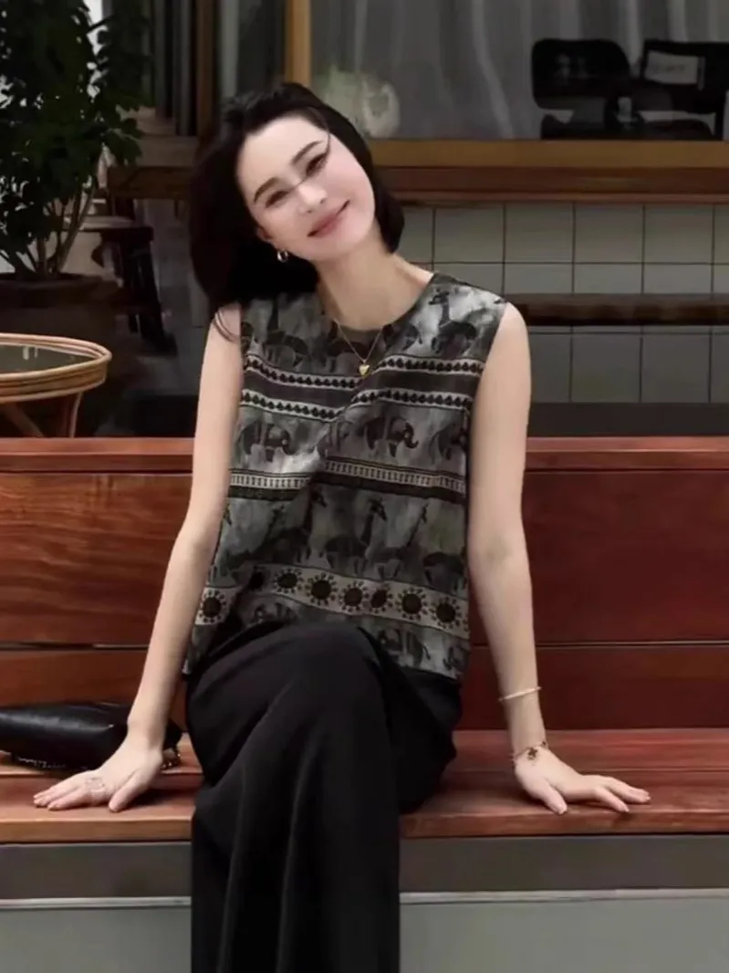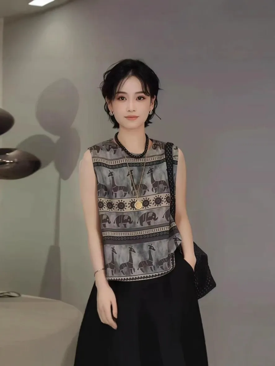 衣都精品- 新款韓版氣質圓領復古提花背心上衣