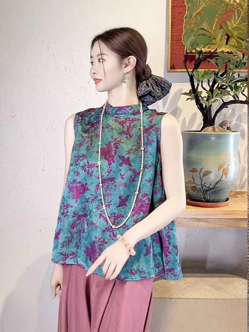 衣都精品- 新款中式國風立領斜襟盤扣無袖上衣