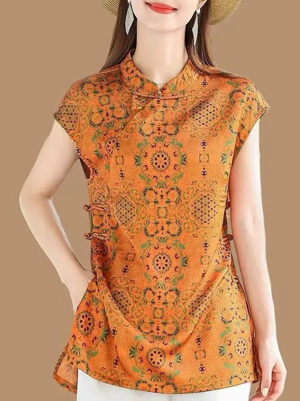衣都精品- 新款中式國風立領斜襟盤扣無袖上衣
