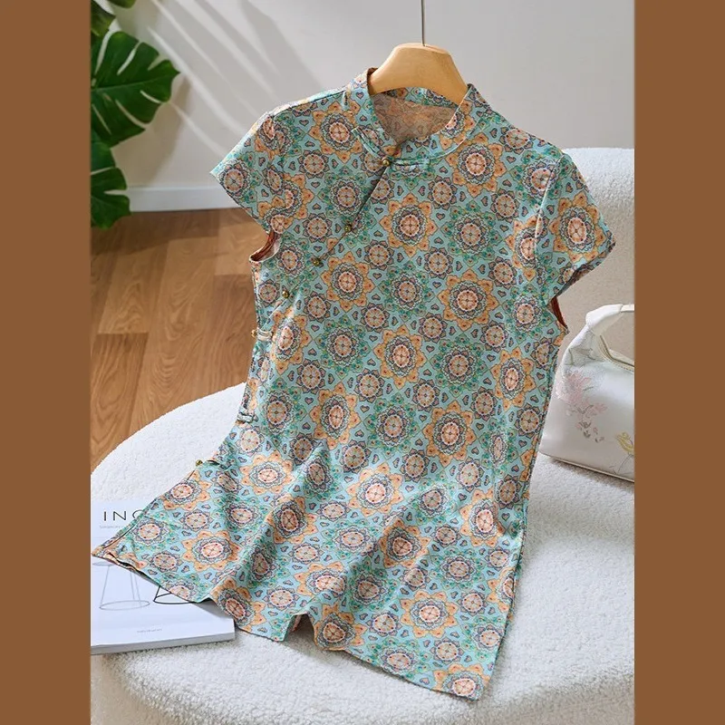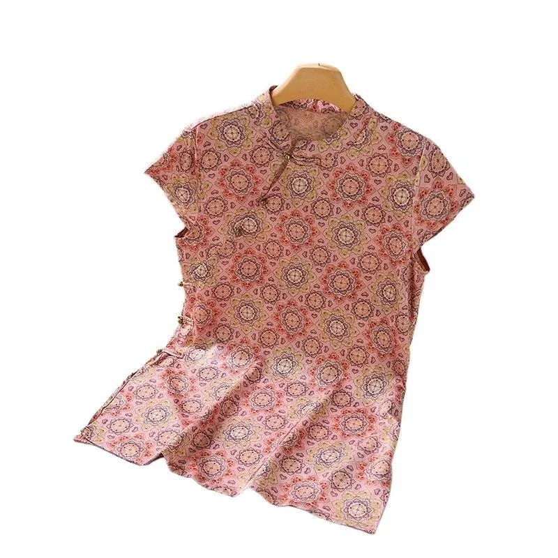 衣都精品- 新款斜襟盤扣立領氣質短袖上衣