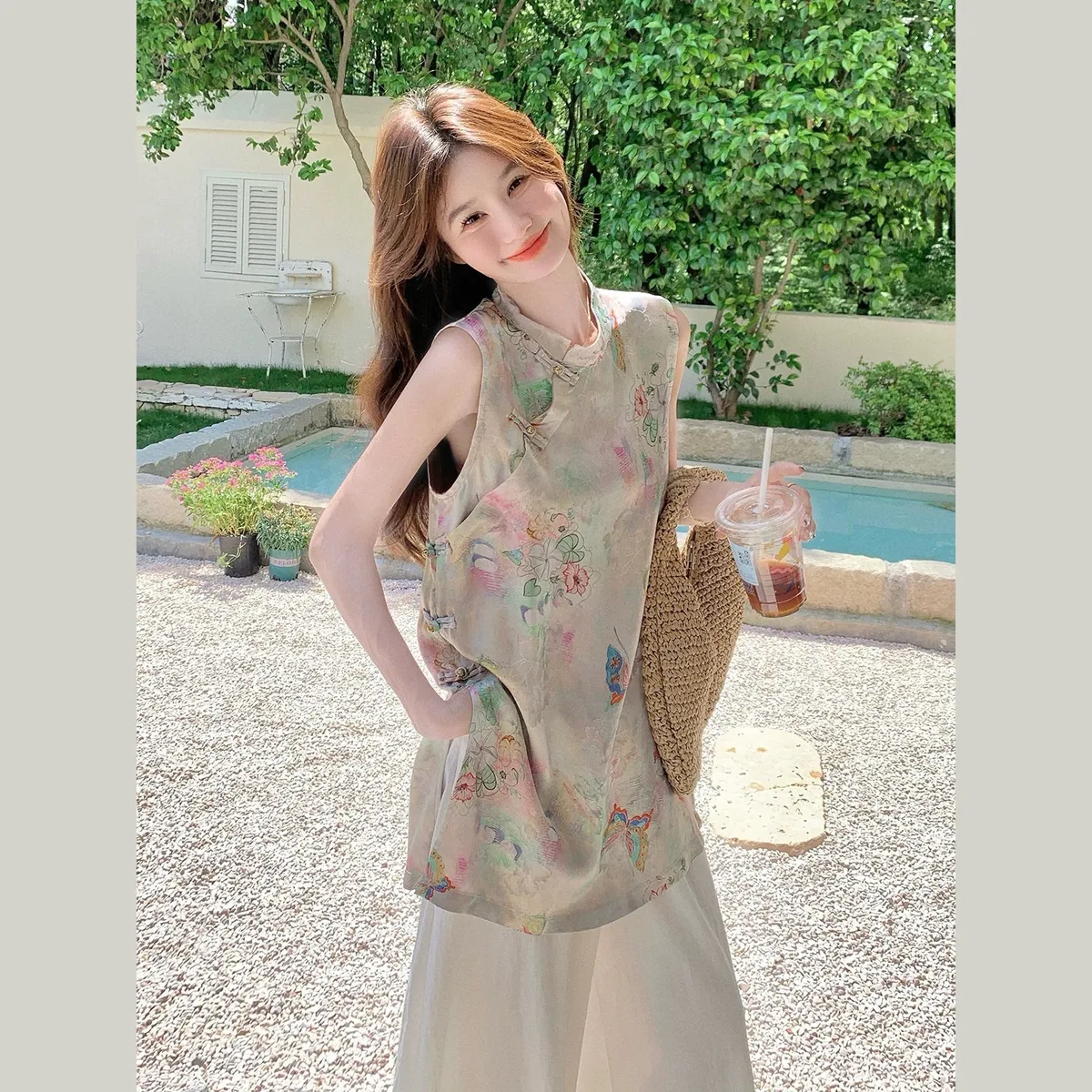衣都精品- 新款斜襟盤扣立領氣質無袖上衣