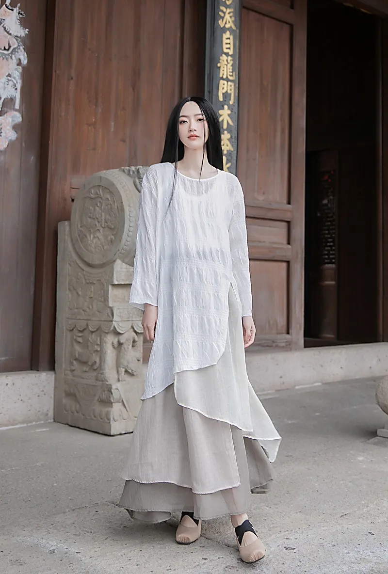 衣都精品- 新款暗黑風飄逸仙女風格天絲上衣