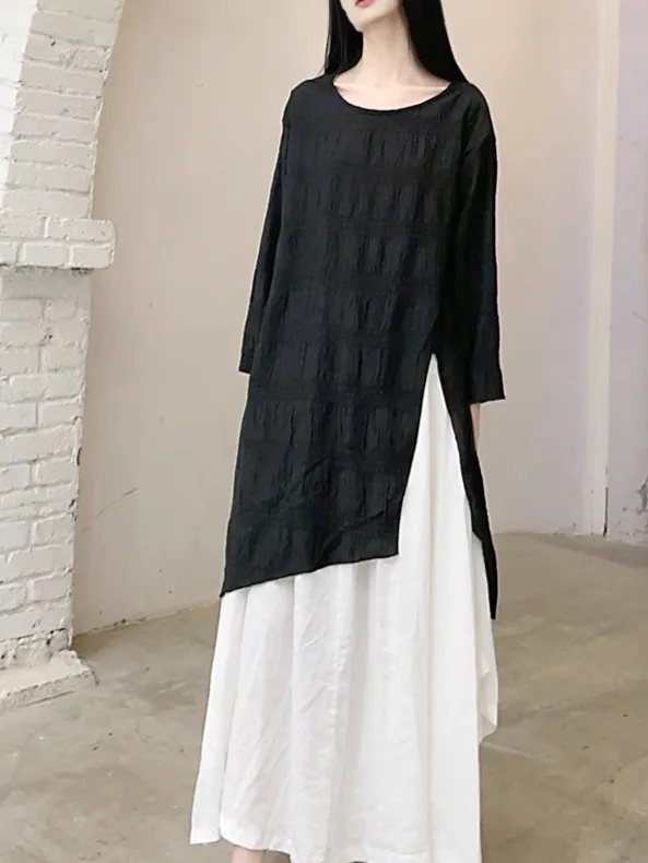 衣都精品- 新款暗格提花不規則圓領套頭罩衫上衣
