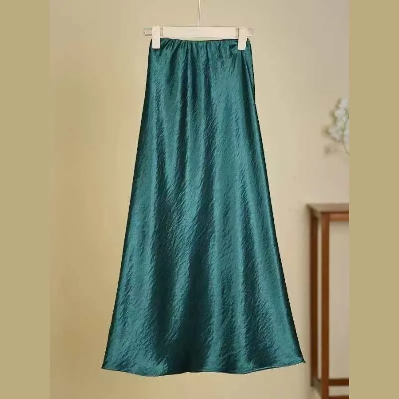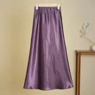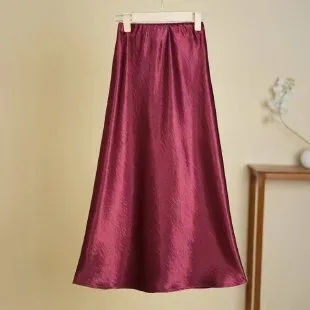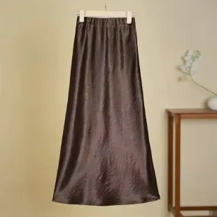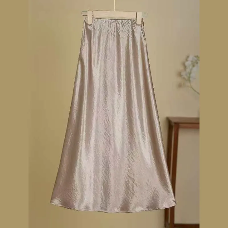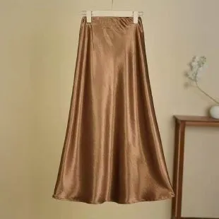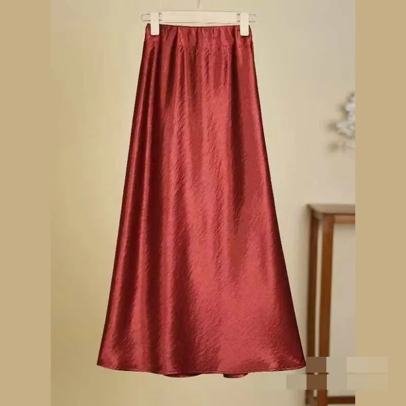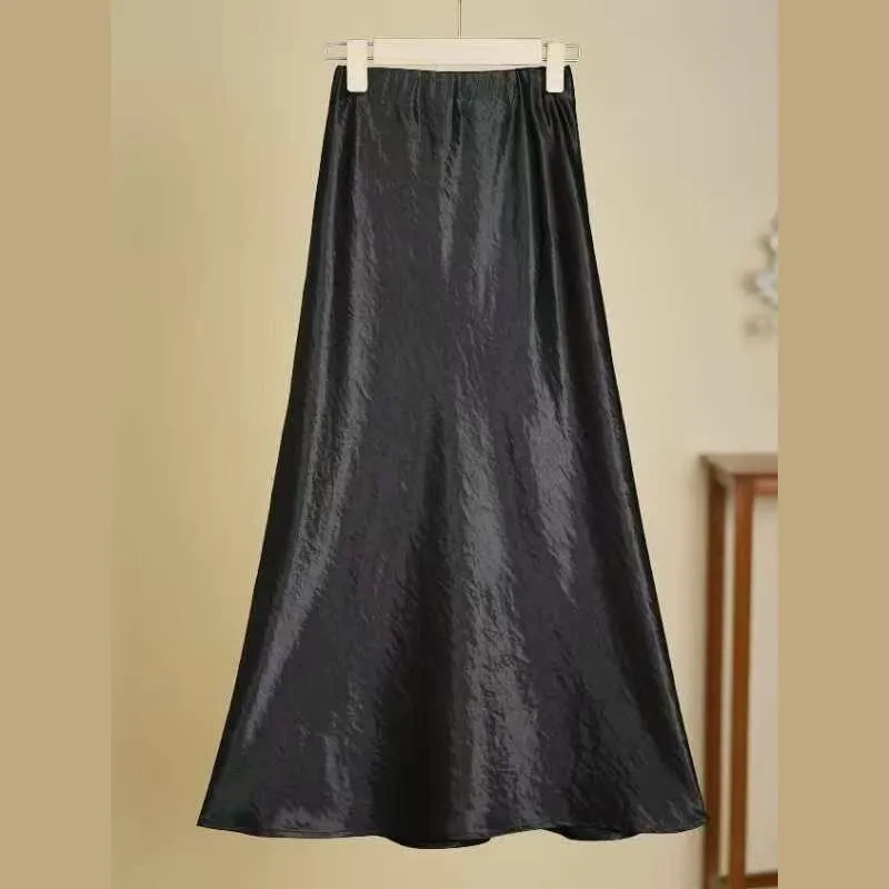 衣都精品- 新款垂感緞面鬆緊腰半身裙