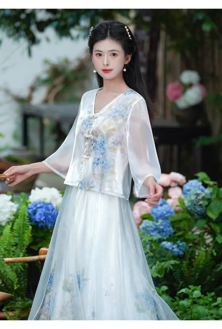 衣都精品- 新款中式圓領重工刺繡改良盤扣上衣+半身裙兩件式套裝