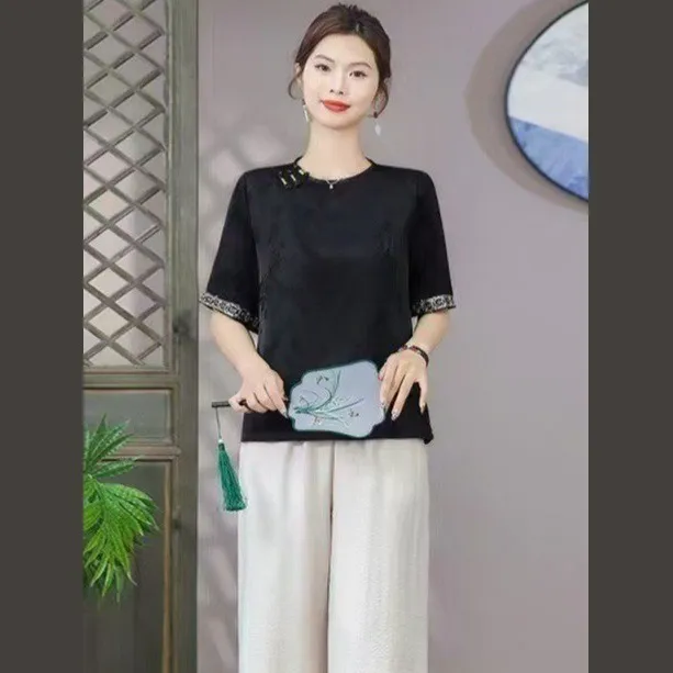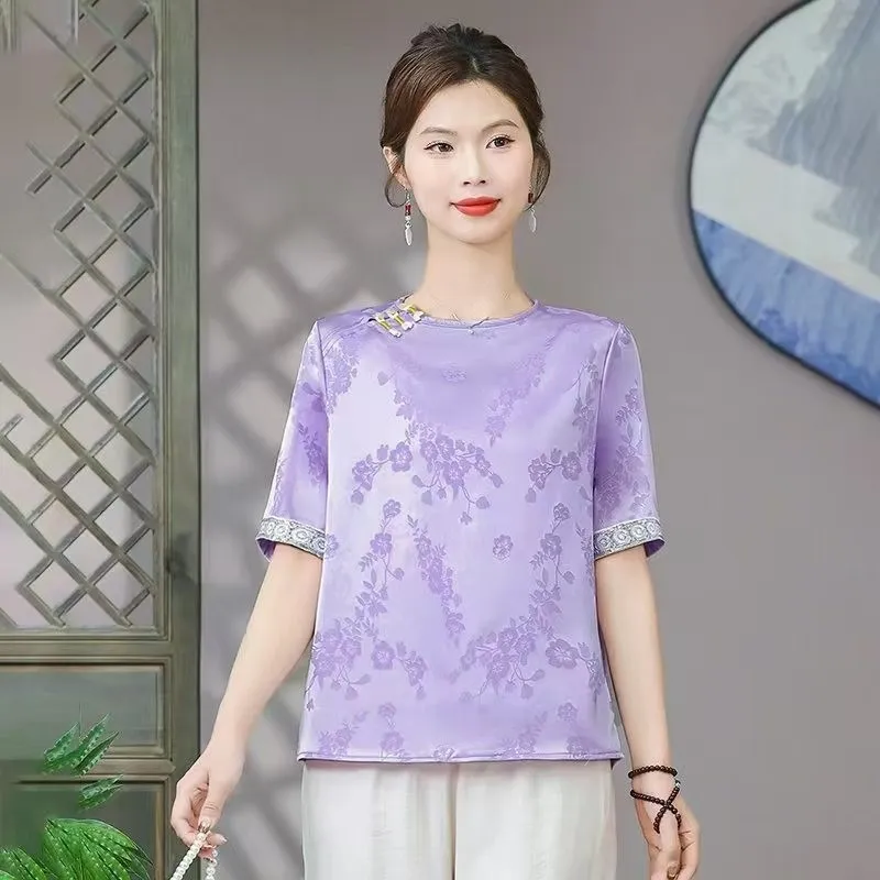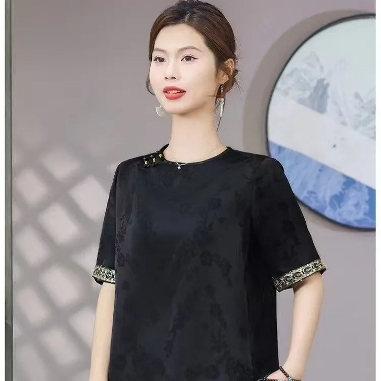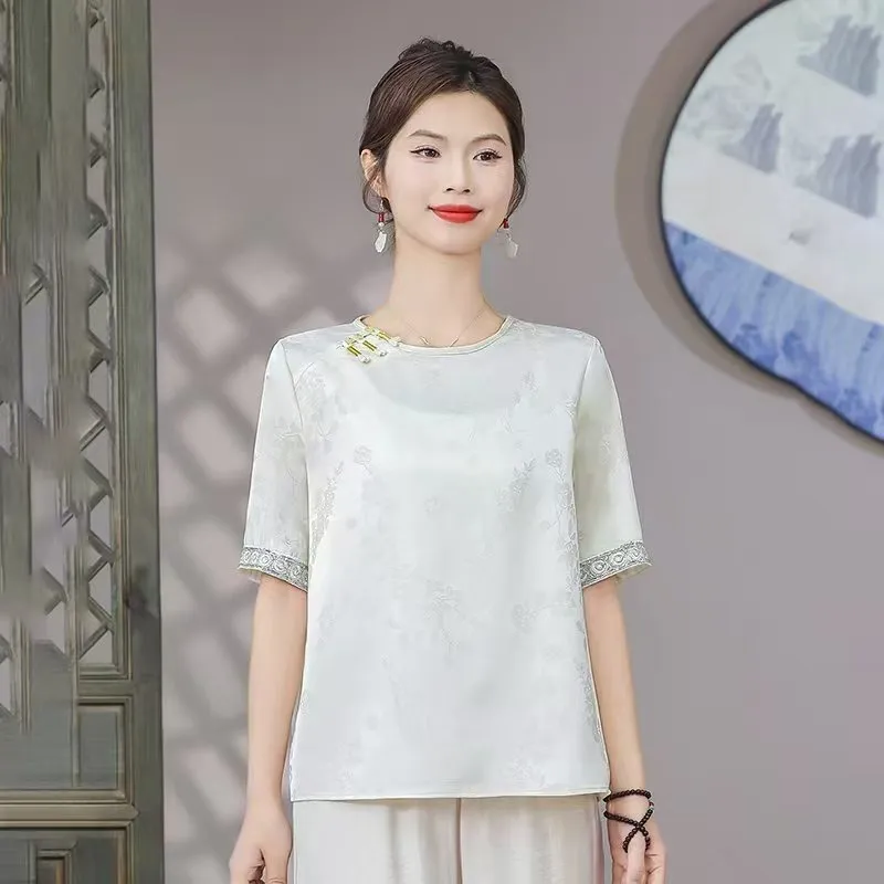 衣都精品- 新款中式短袖薄款圓領盤扣上衣