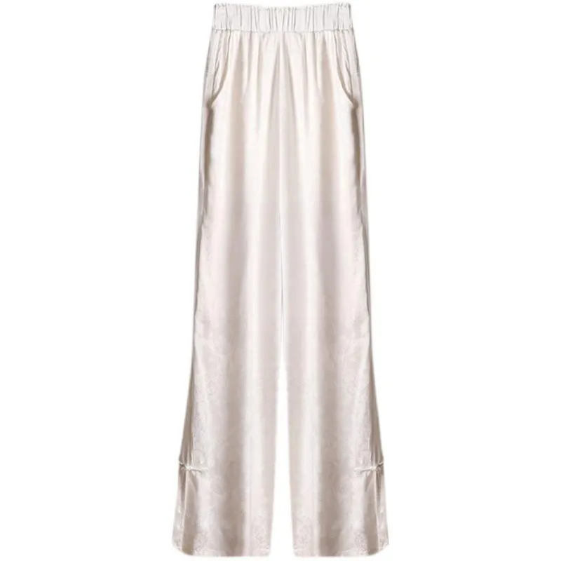 衣都精品- 新款中式冰絲開叉薄款直筒褲
