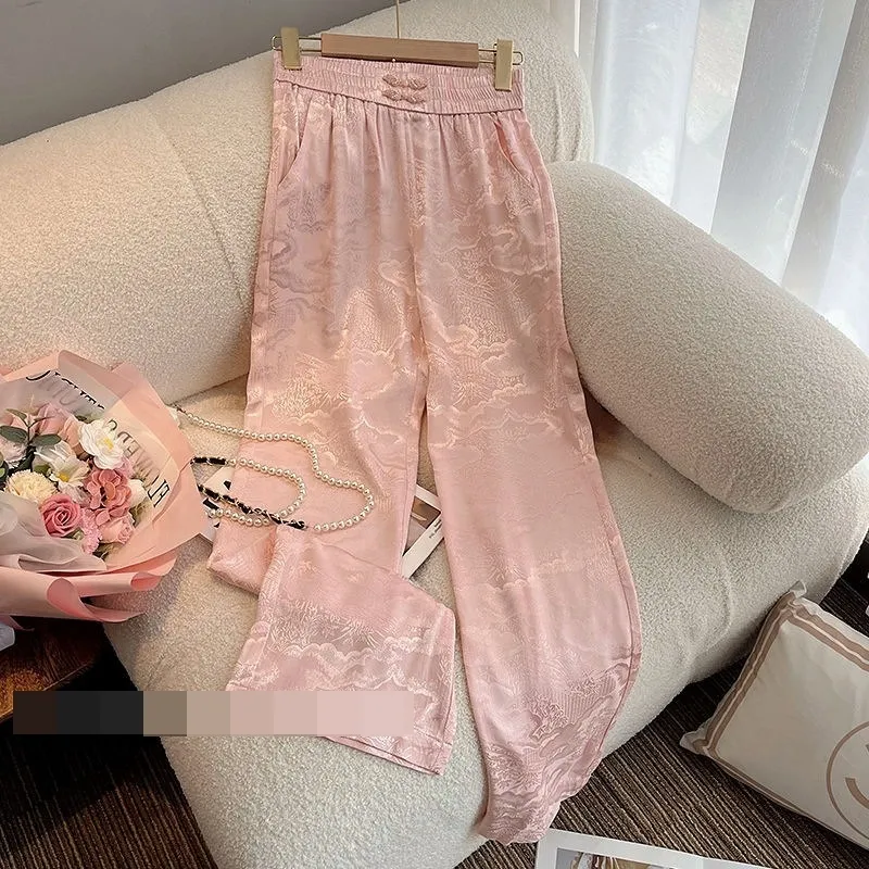 衣都精品- 新款中式冰絲開叉薄款直筒褲