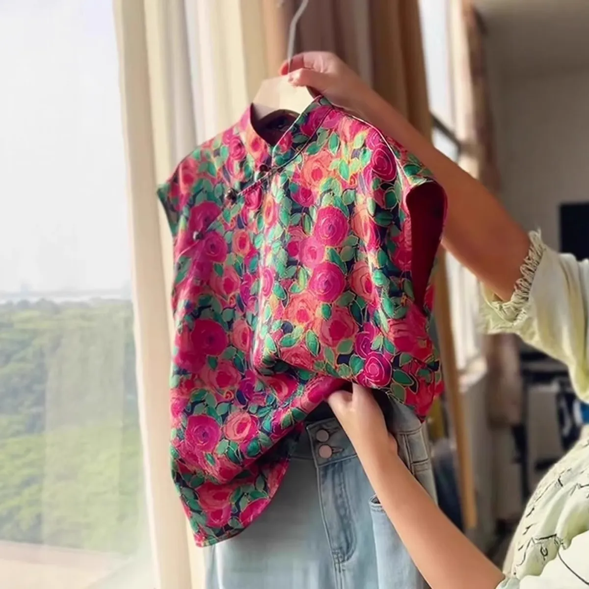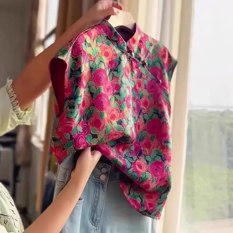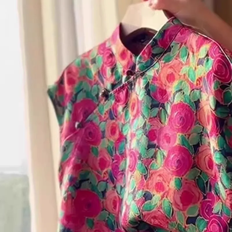 衣都精品- 新款復古油畫印花洋氣立領斜襟上衣