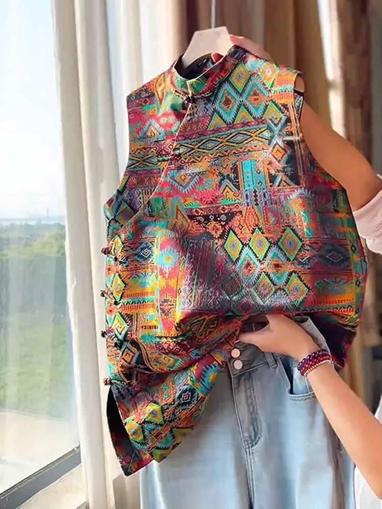 衣都精品- 新款復古油畫印花洋氣立領斜襟上衣